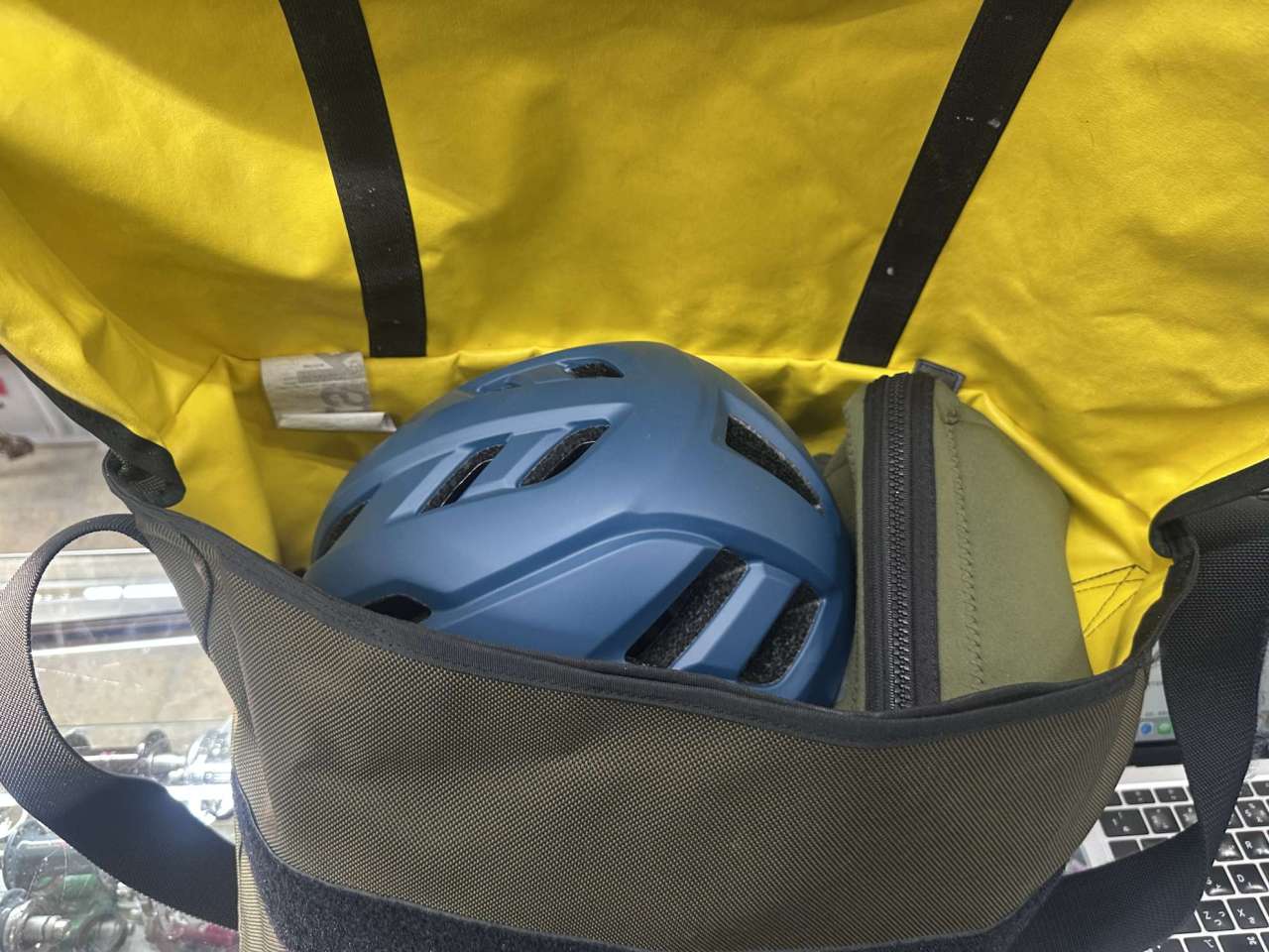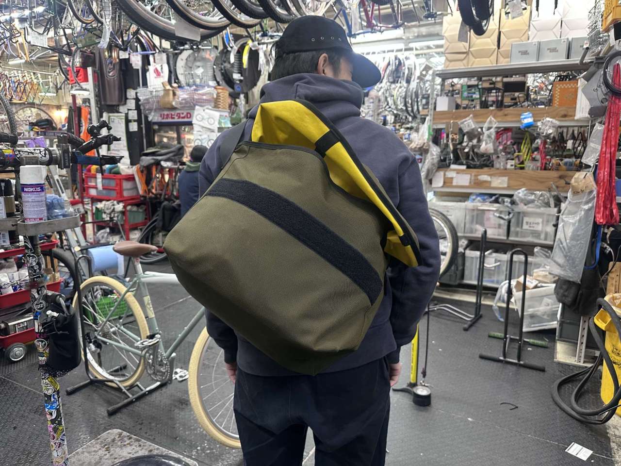これまではメッセンジャーバッグでライドに行っていましたが、冬になるとスウェットやらシャカシャカアウターやら夏以上にかさばって、これにヘルメットを入れるともうパンッパン。