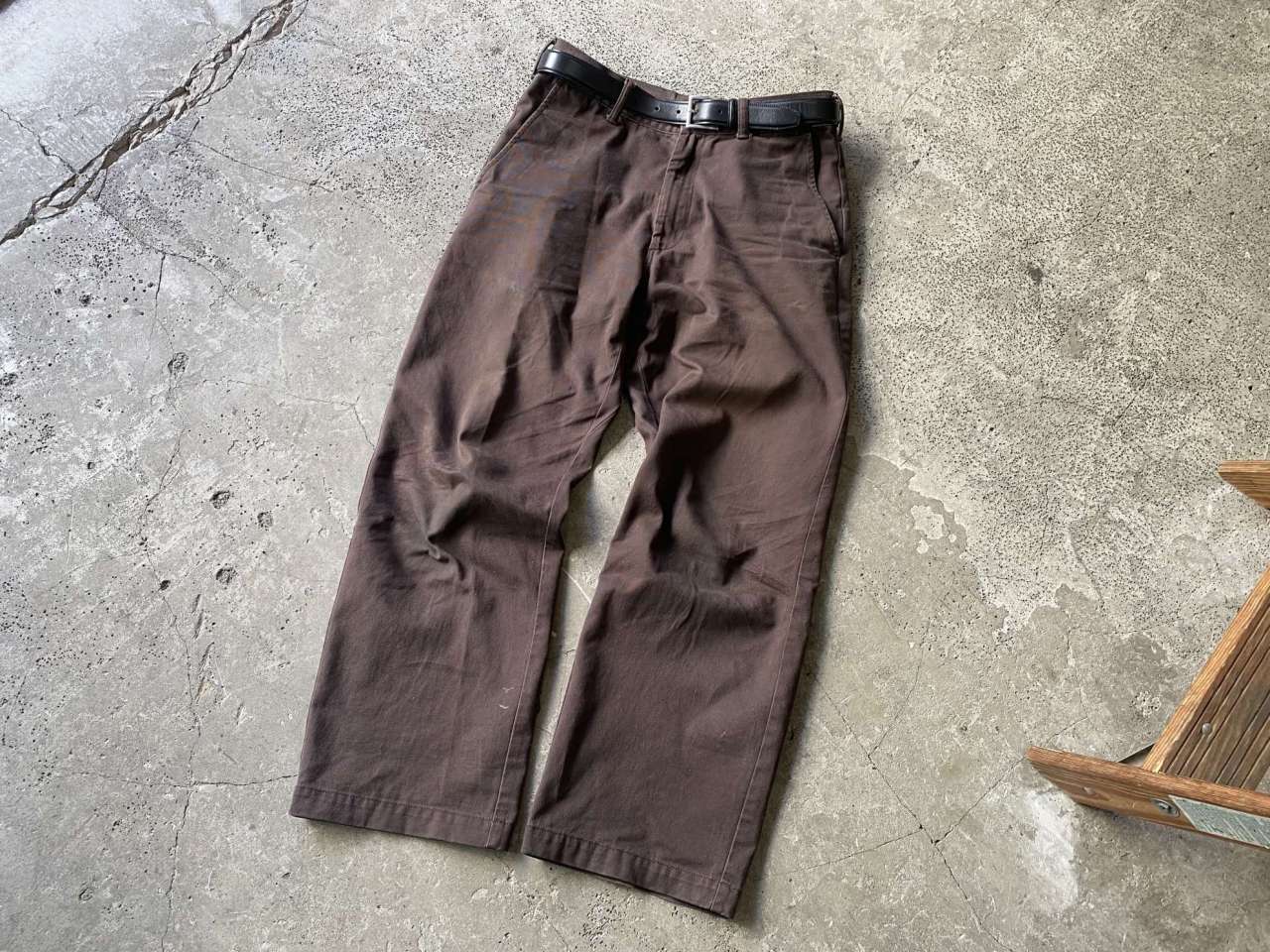 個人的に裾にボリュームが出るよりジャスト目で履くのが好きなので僕はこのサイズ。