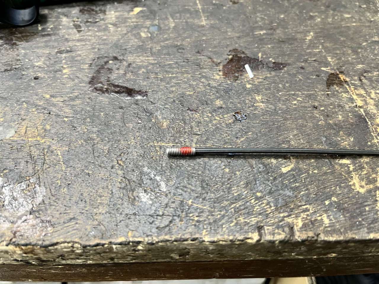 この縁の下の力持ちである小さいイモネジで調整しているだけなのですが、このネジには緩み留めが大概塗られています。(赤いの)