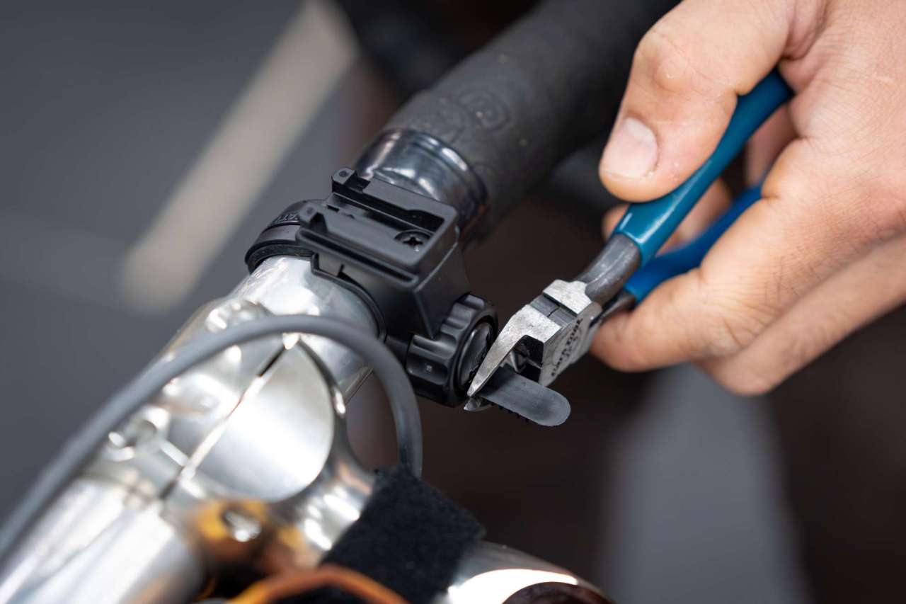 細い部分に取り付ける際はバンド部分の余白がピョコっと余ったりするので、要らん部分は切ってもうてください。