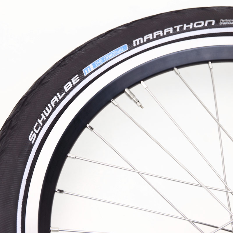このタイヤ、接地面がめちゃめちゃ分厚いのはもちろん、サイド部分もヨレる心配がないくらいゴム厚めです。