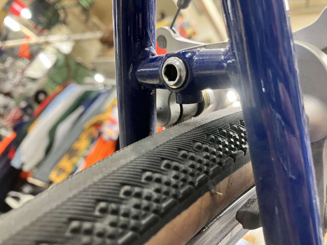 デザイン当時とは世情(主にパーツ事情)がかなり変わっているということもあり、今ロットのフレームはタイヤクリアランスを少し広げてくれていました。