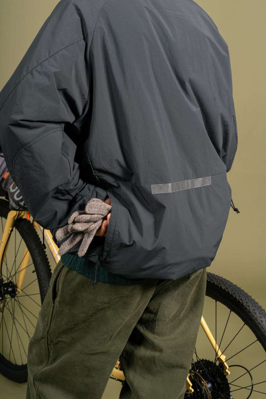 別注ならではのリフレクターと大きいポケットは、安全性・収納力抜群というメリットはもちろん、シンプルに格好いい。