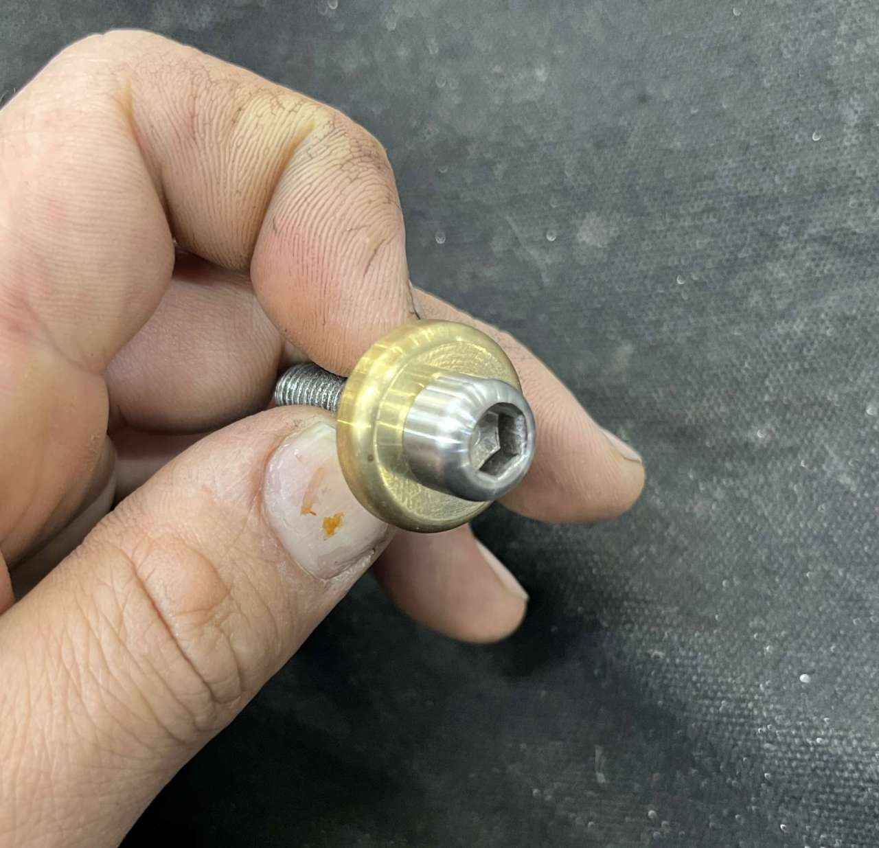 そんなボルトも普通のボルトではなく、”ファンシーボルト”と呼ばれる面が取られた特製。(しかし爪汚いな)
