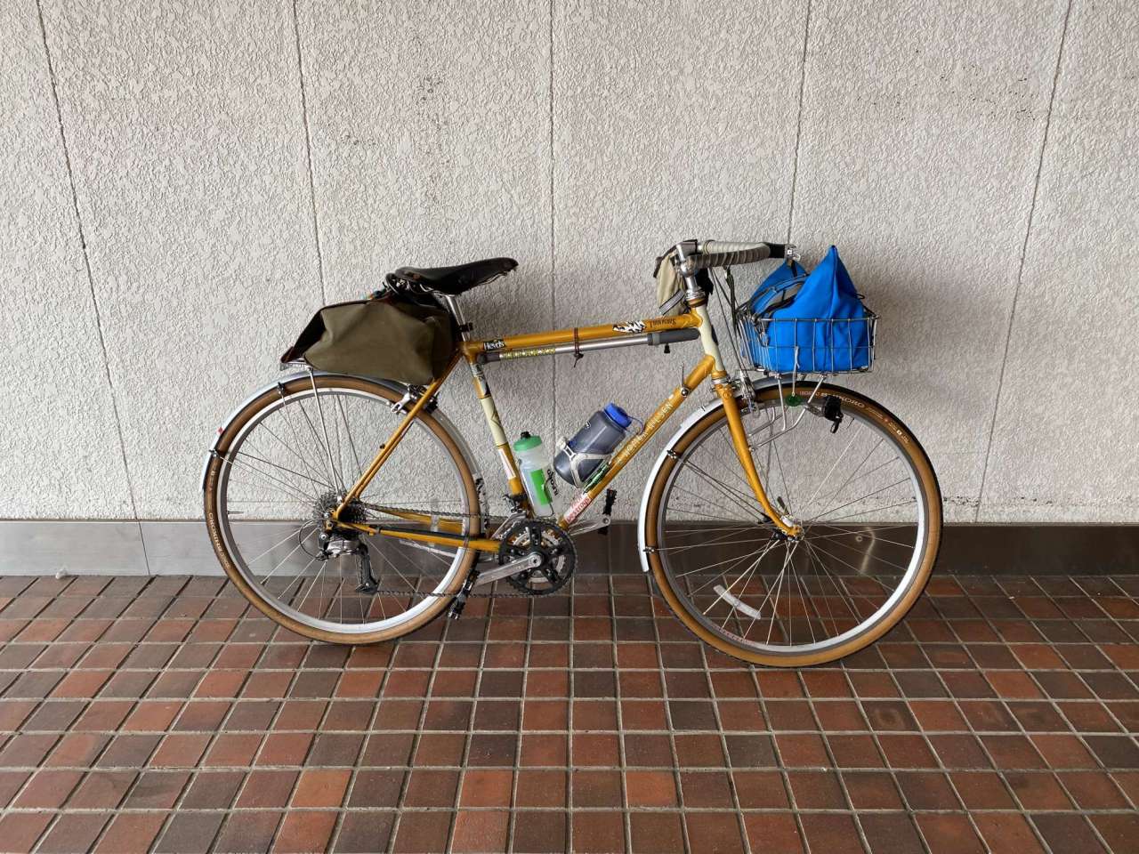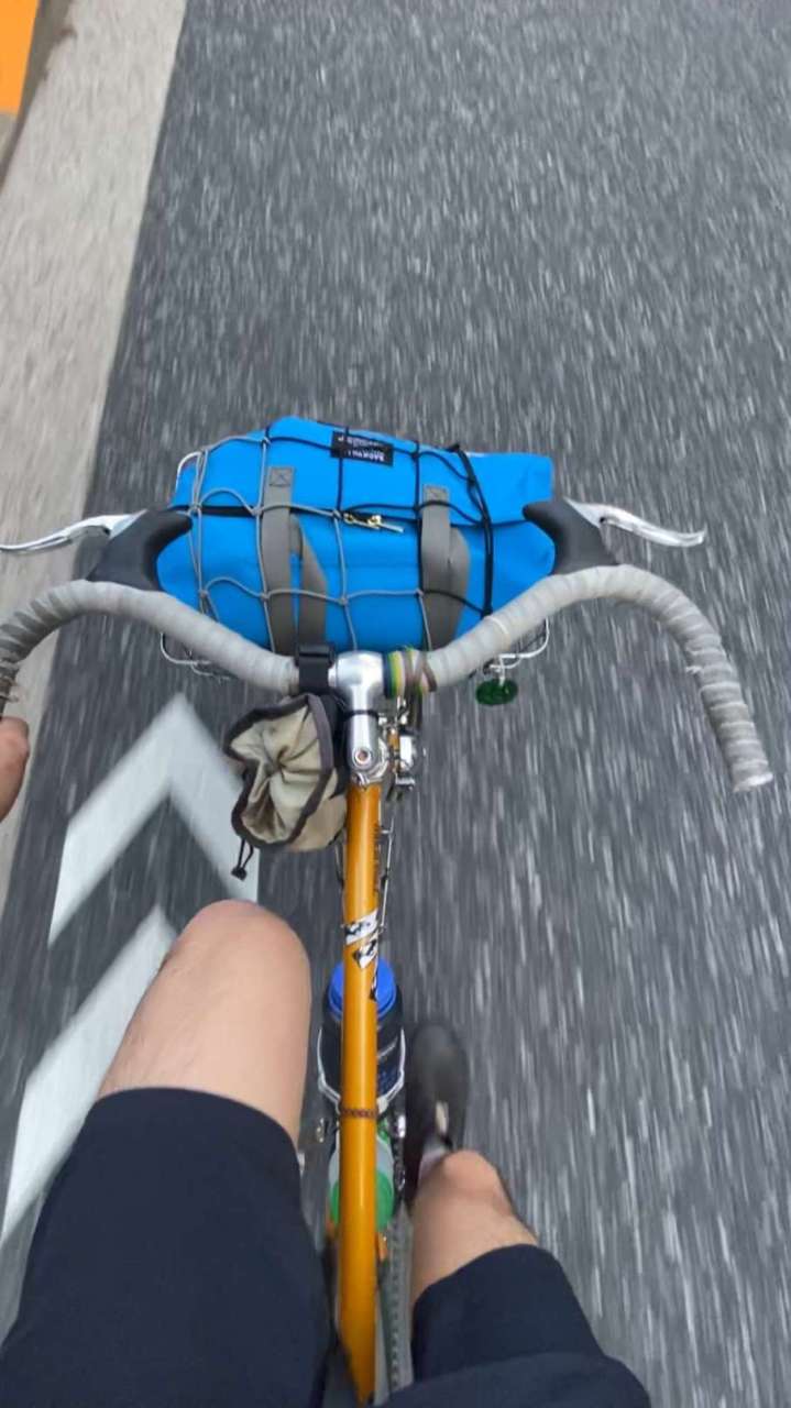 装備に関しては途中キャンプとかはせず、1日で走り切ることを目標にしていたのと2泊3日の夏場だったので荷物は少なめです。前かごのSackville shopbagに衣類や携帯レンチ、モバイルバッテリーなどを。後ろのBagboyに目的地まで使う事のない寝間着や出番の少ない替えのチューブやその他工具を入れていきました。