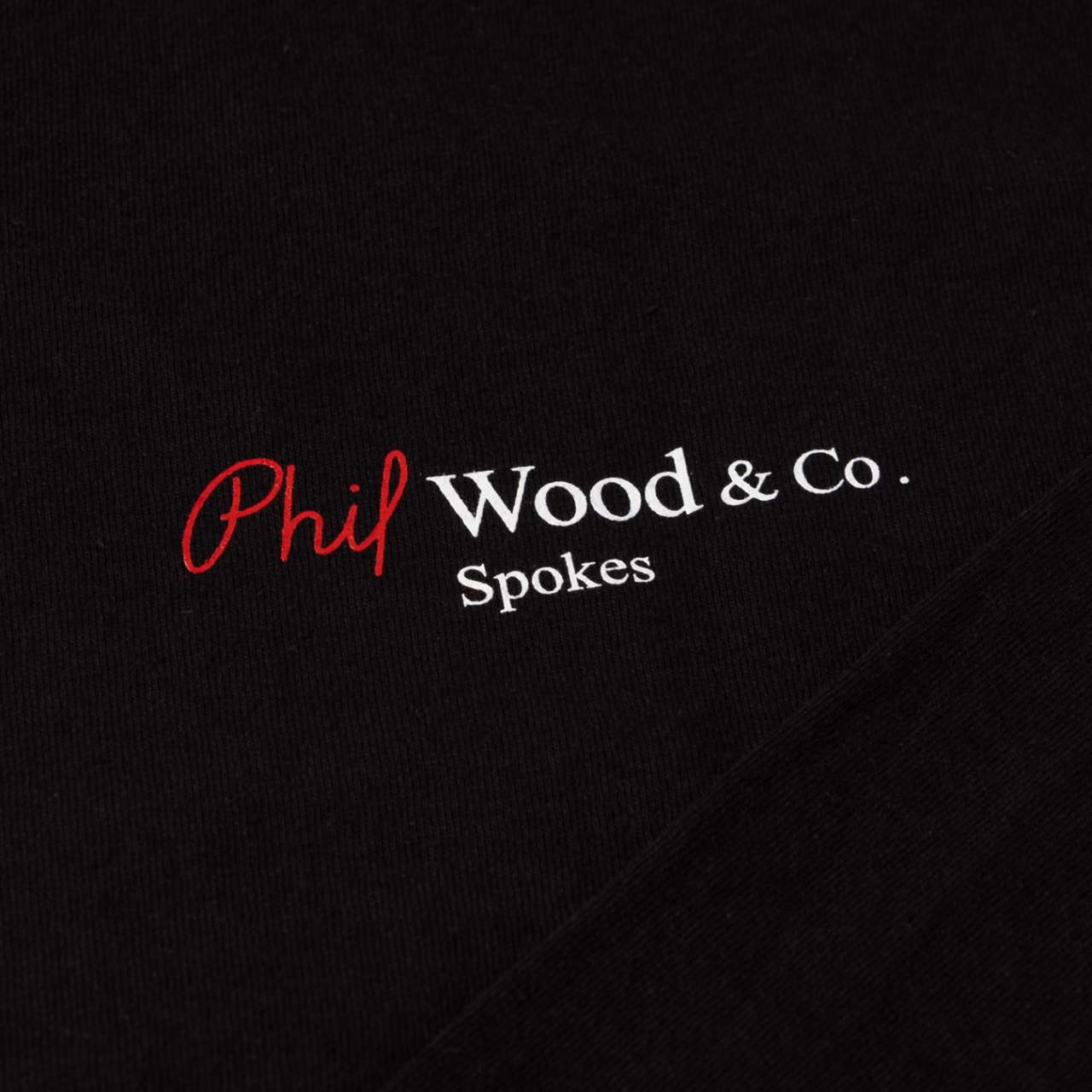 背面にはPhil WoodのスポークのアイコニックなPロゴにクローズアップしたイラストを。