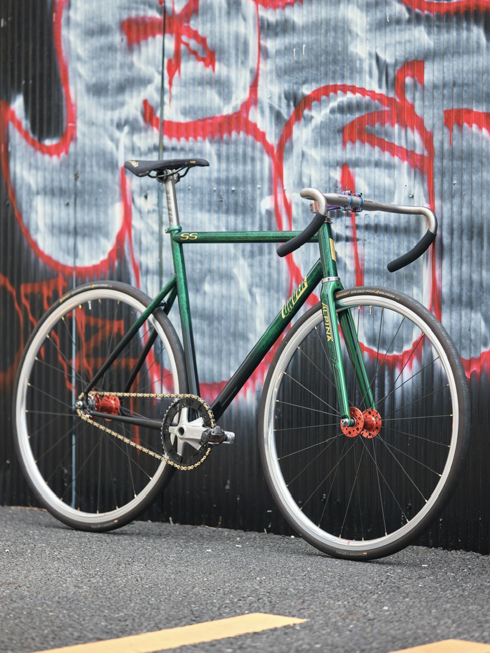 元メッセンジャーであり、レースシーンにも明るいライダーなのでバイクのセッティングもカチッとしててかっこいい!