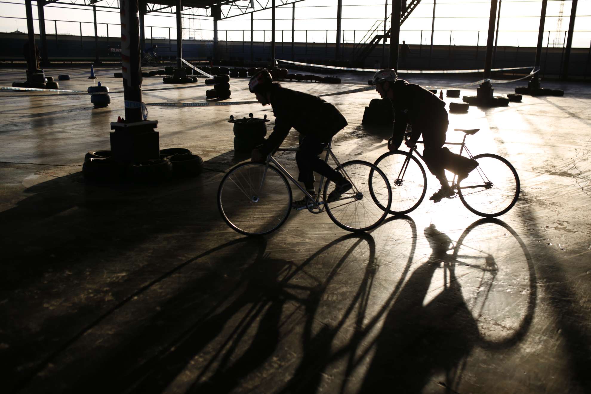 FWのT.I.Eを競輪ドロップハンドル化で走ってました。オールドスクールな細身のフレームだからこのスタイルも似合っちゃうね!