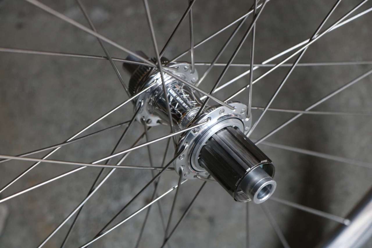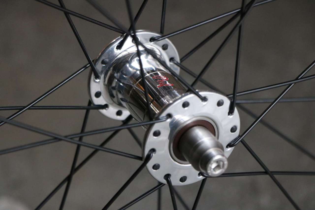 外周のリムは可能な限り軽く、中心部で遠心力の影響を受けないハブは少し重いですが頑丈でヌルヌル回転のPhilwoodで。これは調子いいに決まってるやつ!
