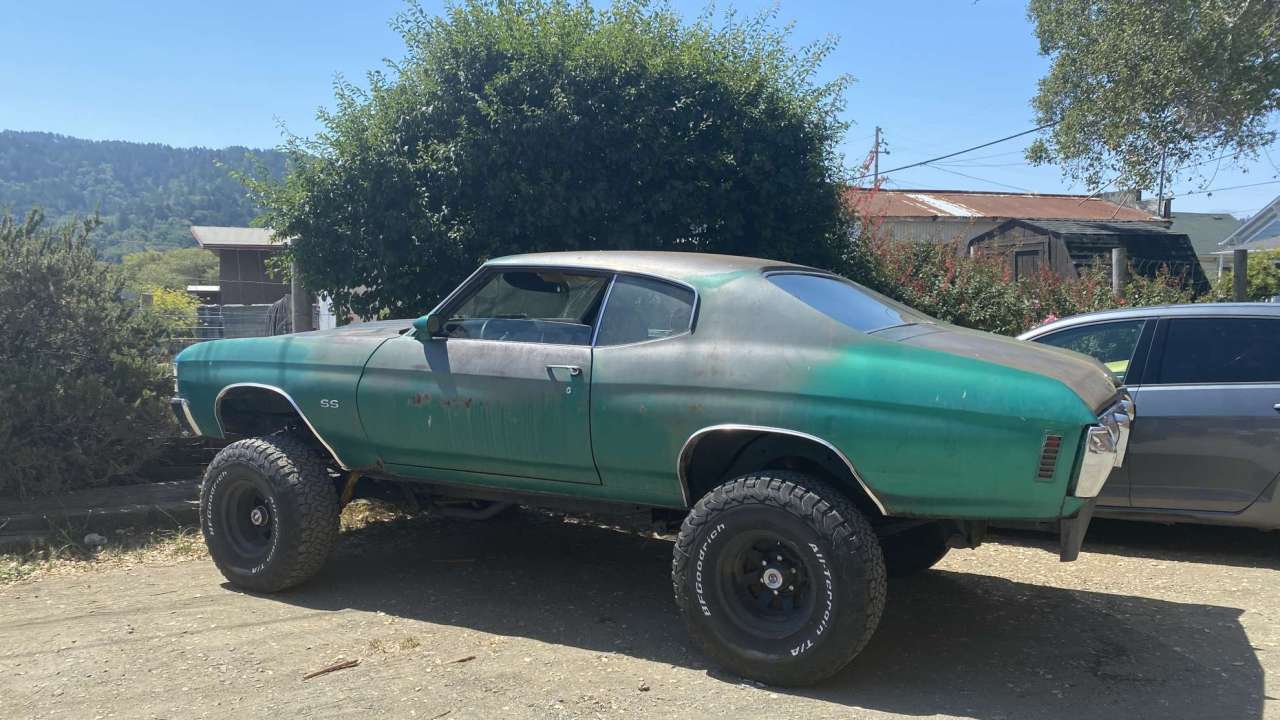ポイントレイズのBlack Mountain Cyclesのお店のすぐ横に停まっていたシボレー?のモンスタートラック。