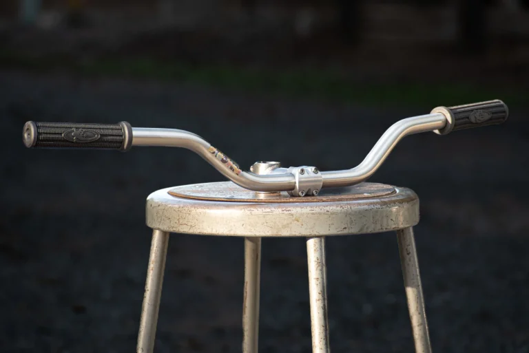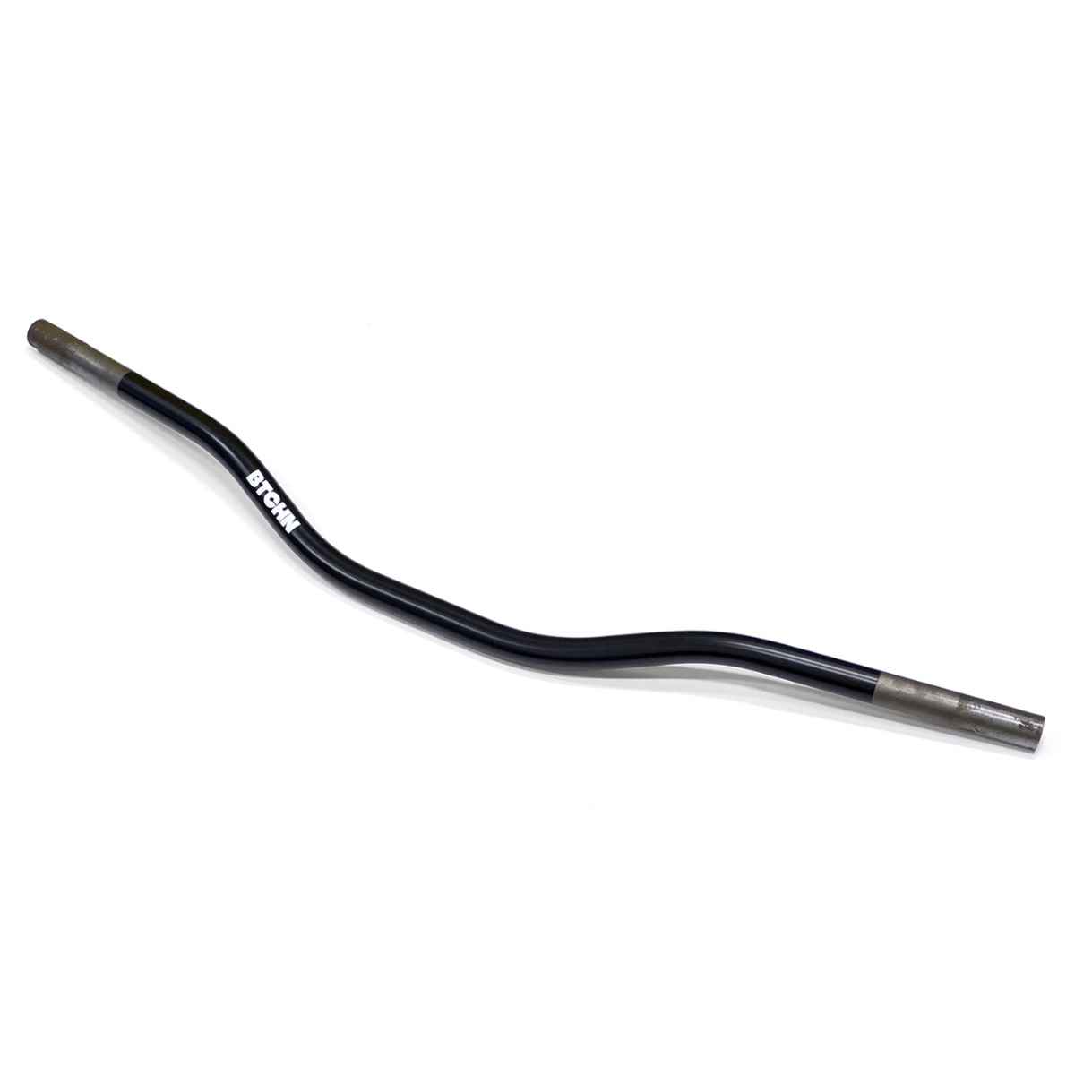 ライズは60mm、バックスィープは12°。BMXで一般的とされてる角度と同じなので、ヒネリなしのド真ん中直球ですね。クロスバーがないのがスッキリしててカッコいい。