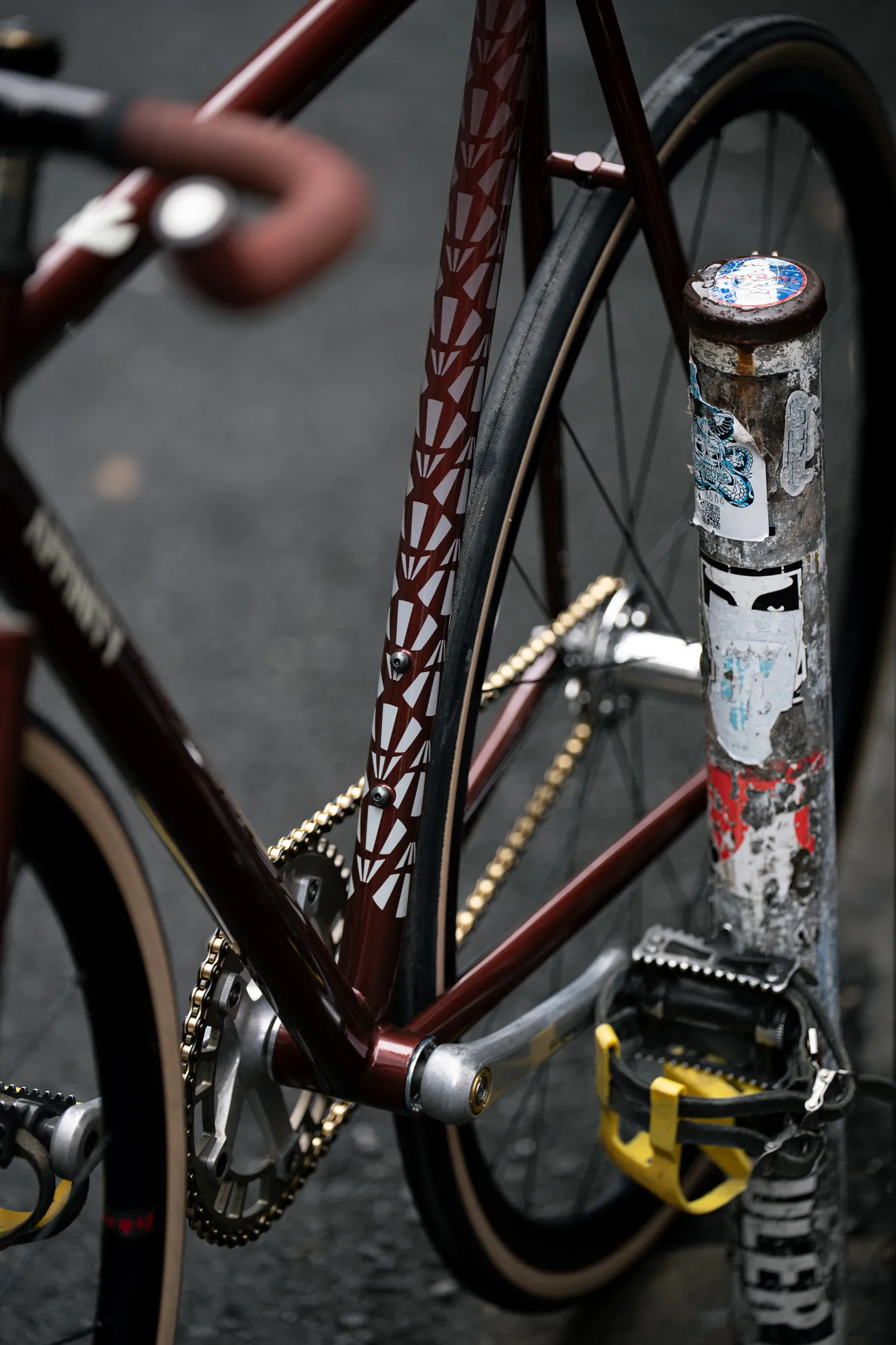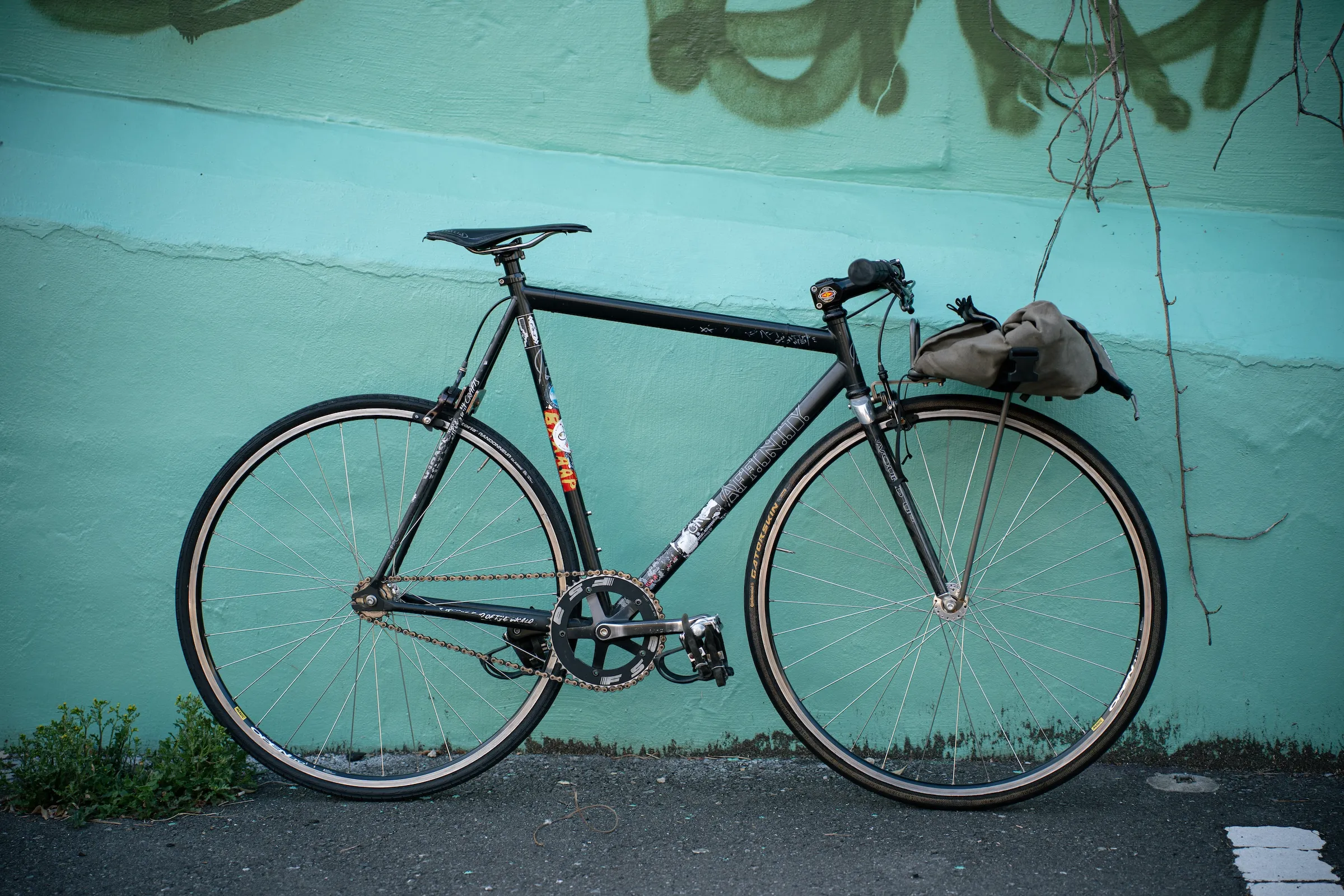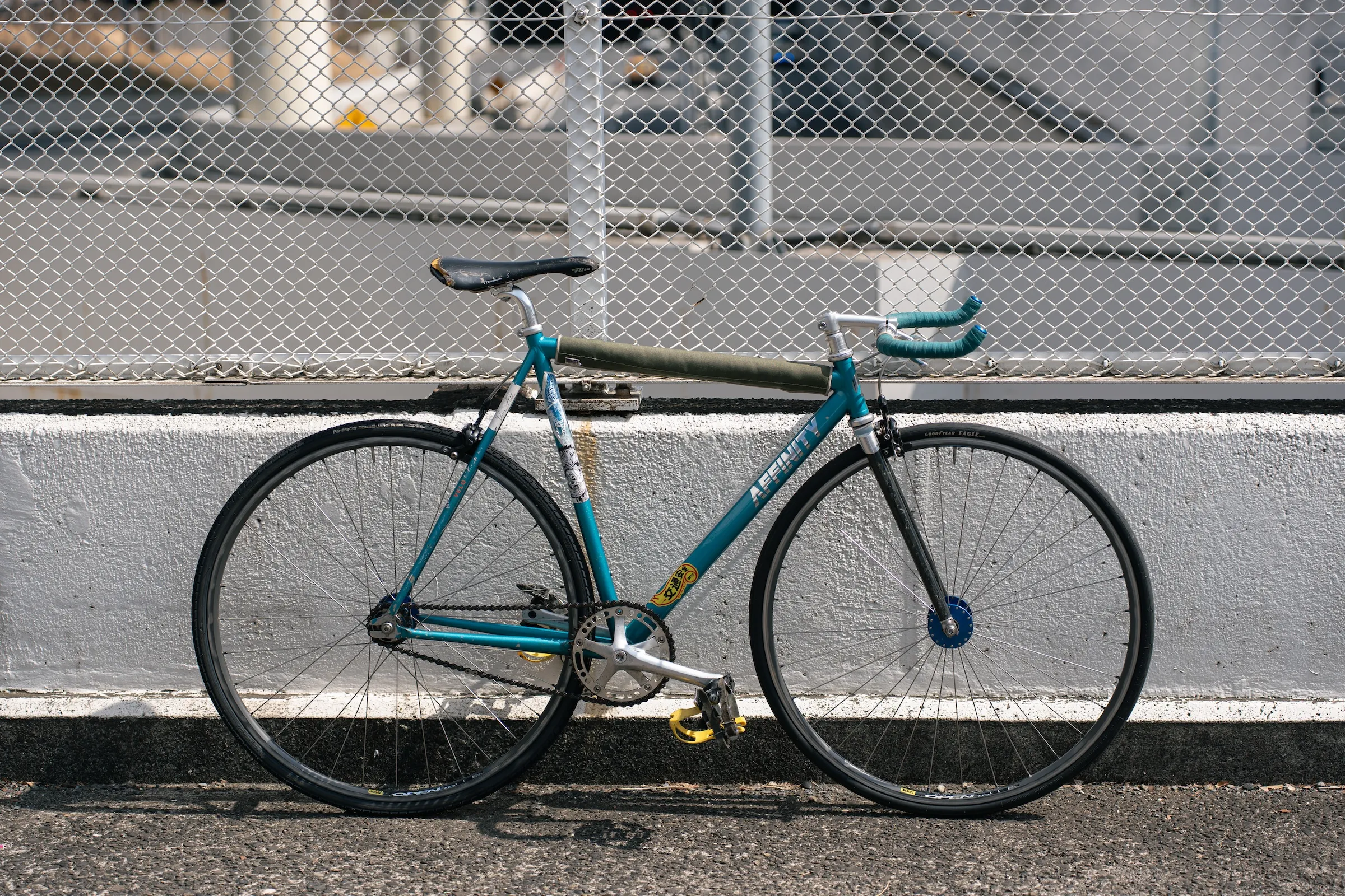 トラックバイクは複数台所有していますが、一番お気に入り。こいつと一緒にストリートで育ってきました。loproに惹かれたキッカケは、何と言ってもその唯一無二のフォルム。強烈なパシュートフォルム、攻撃的なストレートフォーク。パシュートジオメトリを採用した非レースニュアンスのトラックバイクではloproが原点であり、頂点では無いかと思っています。MASH SFライダーのMatt Reyesが乗っていたloproにも相当影響を受けました。