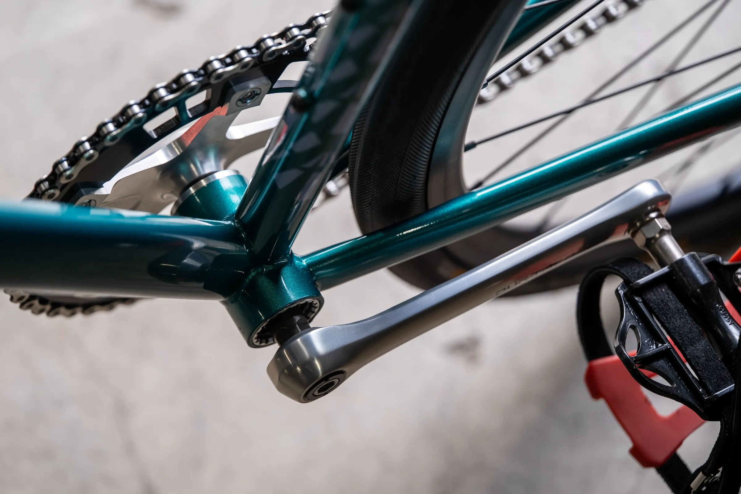 トップチューブとダウンチューブには、エアロ形状のクロモリ製オリジナルカスタムバテッドパイプを採用し、ハードなライディングにも応えるタフさと、スチールならではのしなやかで粘りのある乗り味を両立。