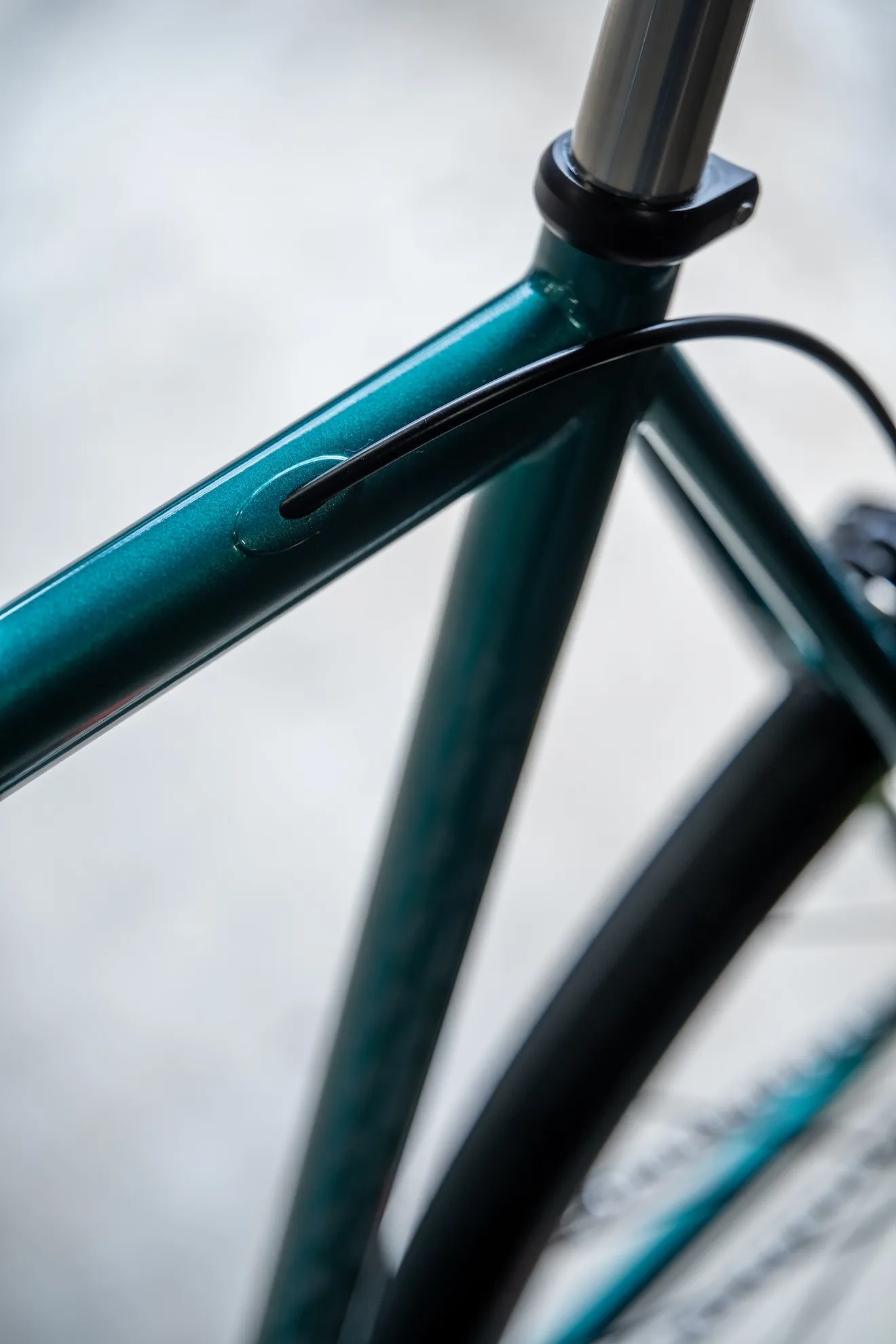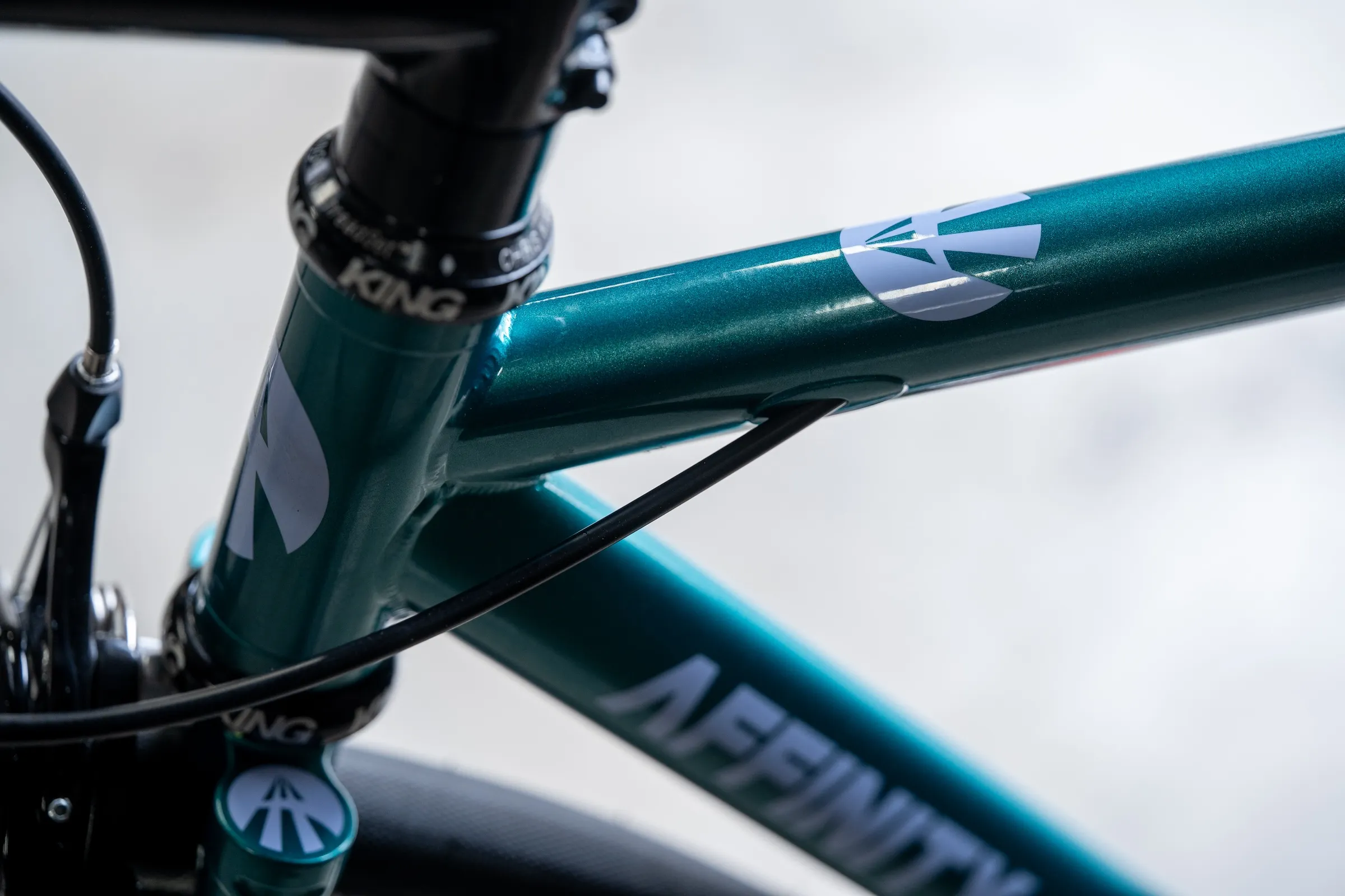 最大の特徴は、トップチューブが前下がりになった攻撃的なオリジナルパシュートジオメトリ。