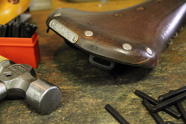 同じ革サドルだからきっと共通の学ぶところあるし、参考にできちゃう裏技やヒントがきっと潜んでるハズ。BROOKSマスターの目がちょっと気マズイけど、BROOKS派に引き込みたいマスターは逆に燃えてくれるでしょう。