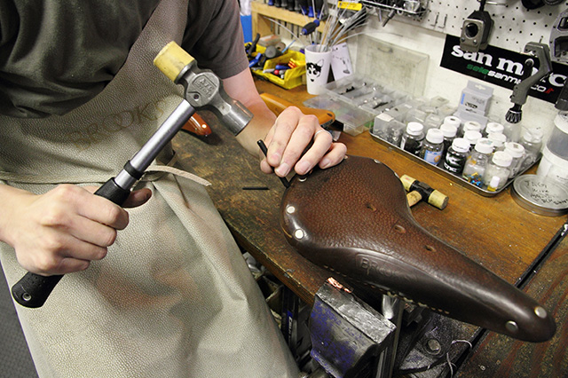 ●BROOKSのレザーサドルのケア、メンテナンスを教わりながら体験できちゃう。 ●長い歴史を持つBROOKSのヒストリーや製造工程のムービーを見たり、製品にまつわるエピソードをゲストのBROOKSマスターから聞けちゃいます。 ・BROOKSはどうやって作られているか? ・サドルの裏の数字列の秘密 ・お尻が痛くならないサドルの育て方・・・etc ●BLUE LUGオリジナルのレザーサドルカバー(2,500円+税)を今回のイベント限定で販売します!意外とこの手のものを探している人も多いと思うのでぜひご参加ください! ●お使いのレザーサドルへ、イニシャルなどアルファベットを打刻するカスタムサービスも同時開催!より自分オリジナルのBROOKSサドルへのお手伝いします。 |