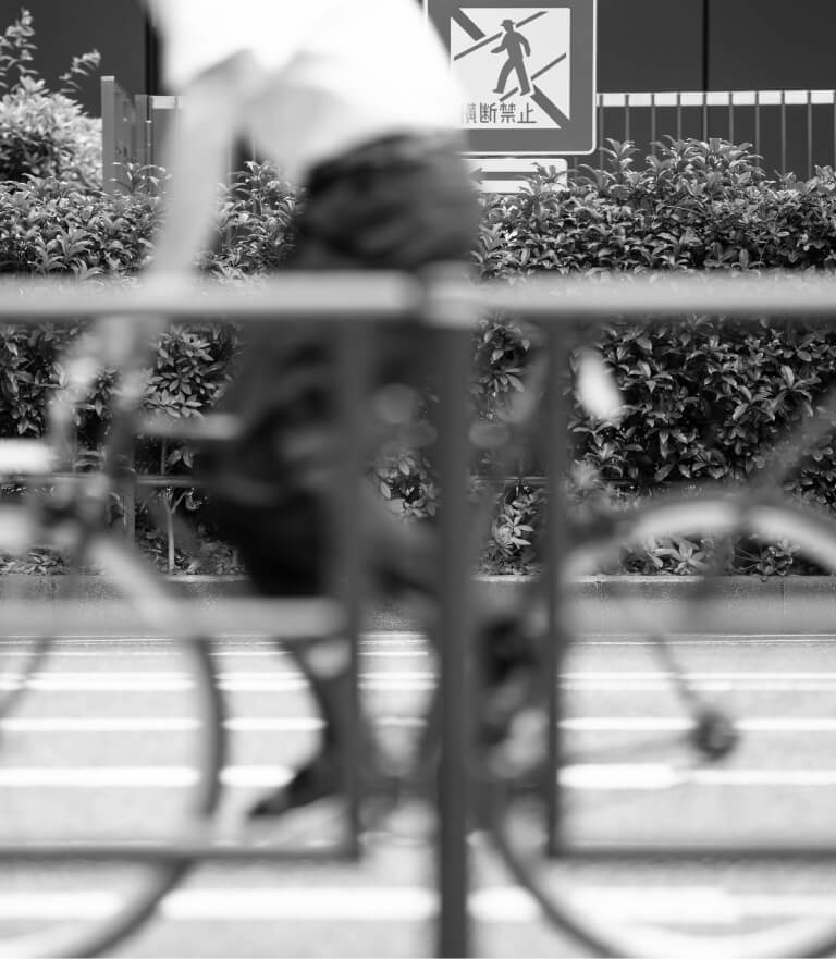 ウェビングにあしらわれたパターンは東京都の都道沿いのガードレールからサンプリングされたもの。