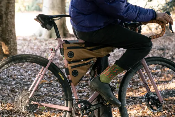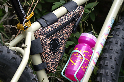 A bike bag that fits the corner of the bike frame. You can use it by itself, or you can combine with the Frame Bag and fill out the dead space of your bike frame, which will technically work like a fullsize frame bag.