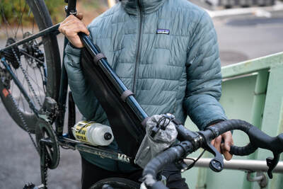 The New Frame Bag SP is available in Dyneema or Cordura fabric. The bag came out as a Super Professional (SP) bag for touring, gravel rides and more tough rides.
