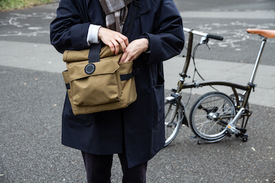 小径車用に設計されたバイクバッグです。基本となるハンドルバッグに加え、ショルダーバッグ、パニアバッグとしても使うことのできる3WAY仕様。 軽量で持ち運びに優れたサイズ感になっていて、通勤や近所へのお買い物などデイリーにお使いいただけます。