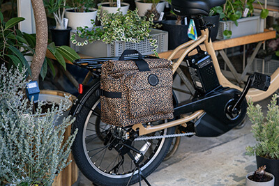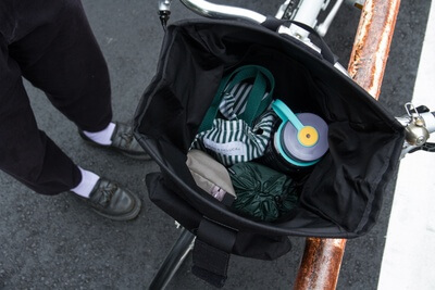 A bike bag designed for bikes with smaller wheels, that can be used as a handlebar bag, shoulder bag and a backpack. It's compact and light weight, making the bag great for commuting, grocery shopping and getting around.