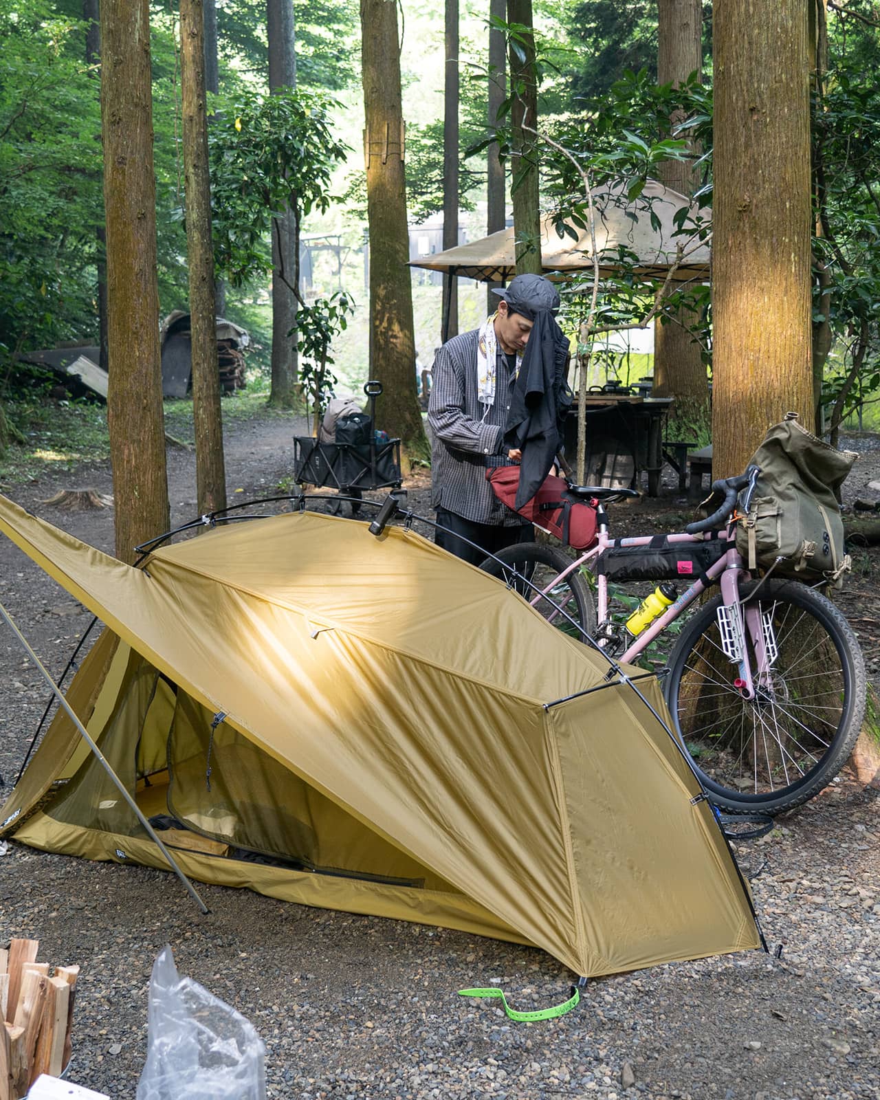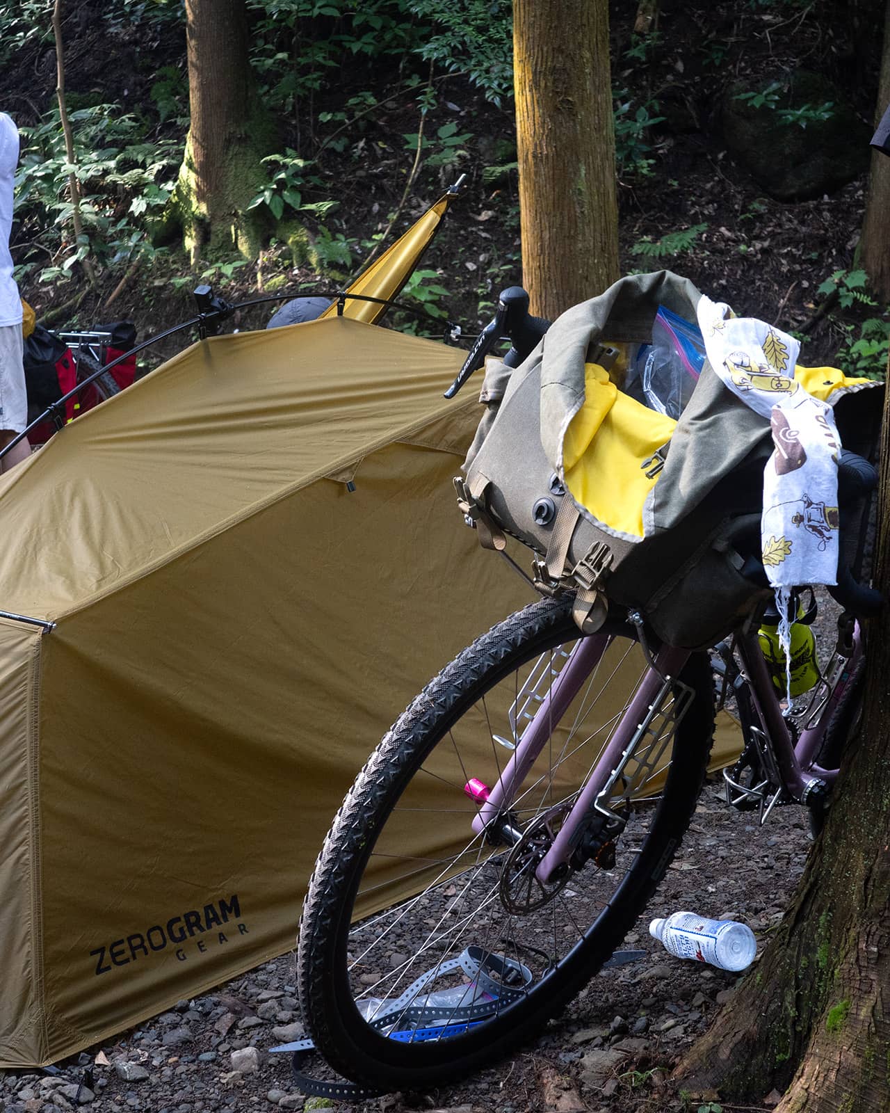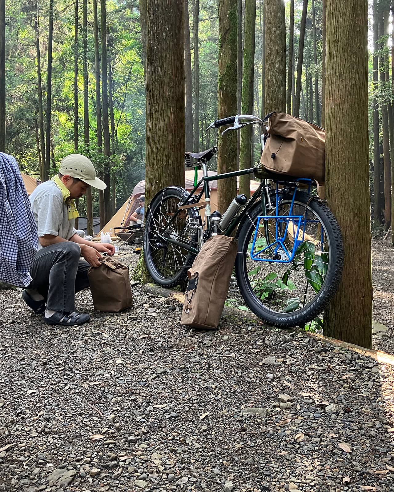 - バイクパッキングスタイルでライドの快適性は意識しました。ハンドル、フレーム、シートとなるべく重さの分散も意識して快適でした。今回テント椅子マットを軽量化して積んでいく物を増やしました、焚き火台や雨天用のタープ、チタンの焼き網など、色々その場で出来る事がある方が楽しいのでバランス取れてたかなと思います。詳しく見る I focused on improving comfort during my rides with this bike packing. Spread out the luggage weight on the handlebar, frame, and seat, which made my ride easier. This time I swapped my tent, chair, and mattress to a lighter one to pack extra items. Bonfire stand, Tarp for sudden rain, and a titanium gridiron… Bringing something that I can do only in camping was part of the fun, and was so worth it!