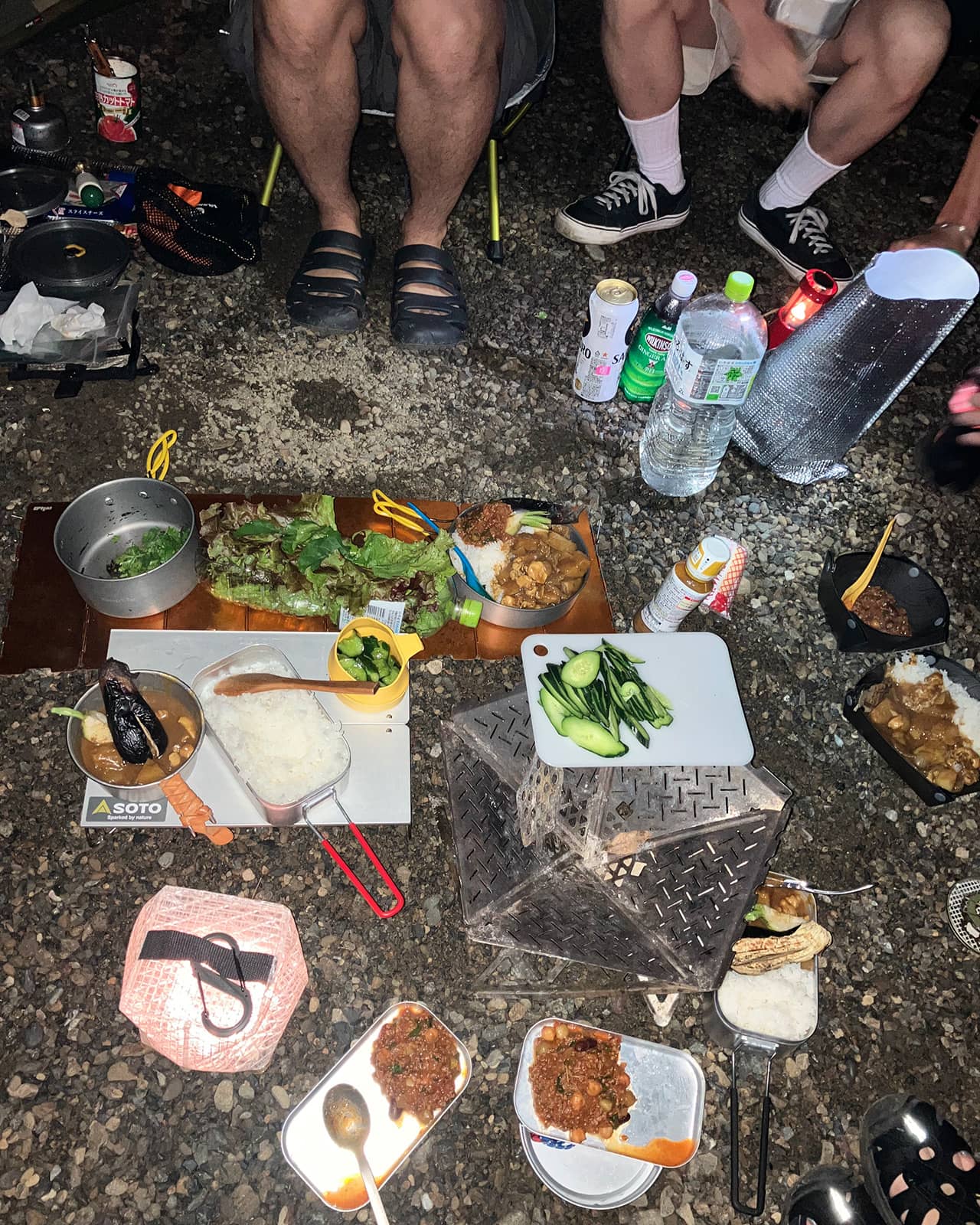 As we started to feel a comfortable amount of sweat, we reached camp! Today we stayed at a campsite called “Shizenjin-Mura”. Apart from the tent area we used, they also had tiny houses to stay, built so that it won’t harm the current natural environment. Next time, I’d like to try out those tiny houses!