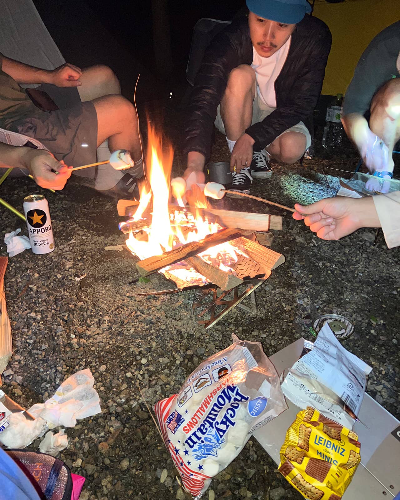 食後はあろちゃんがどうしてもやりたい!と持って来てくれた焼きマシュマロをみんなで焚き火を囲んでまったり時間。