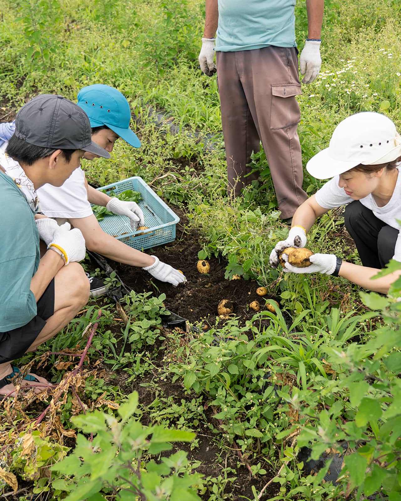 ここは野菜の収穫体験ができる場所で、夜のおいしいご飯の為の調達をします。いつも生活している同じ東京都内とは思えない緑の広がり。穏やかな時間が流れてました。