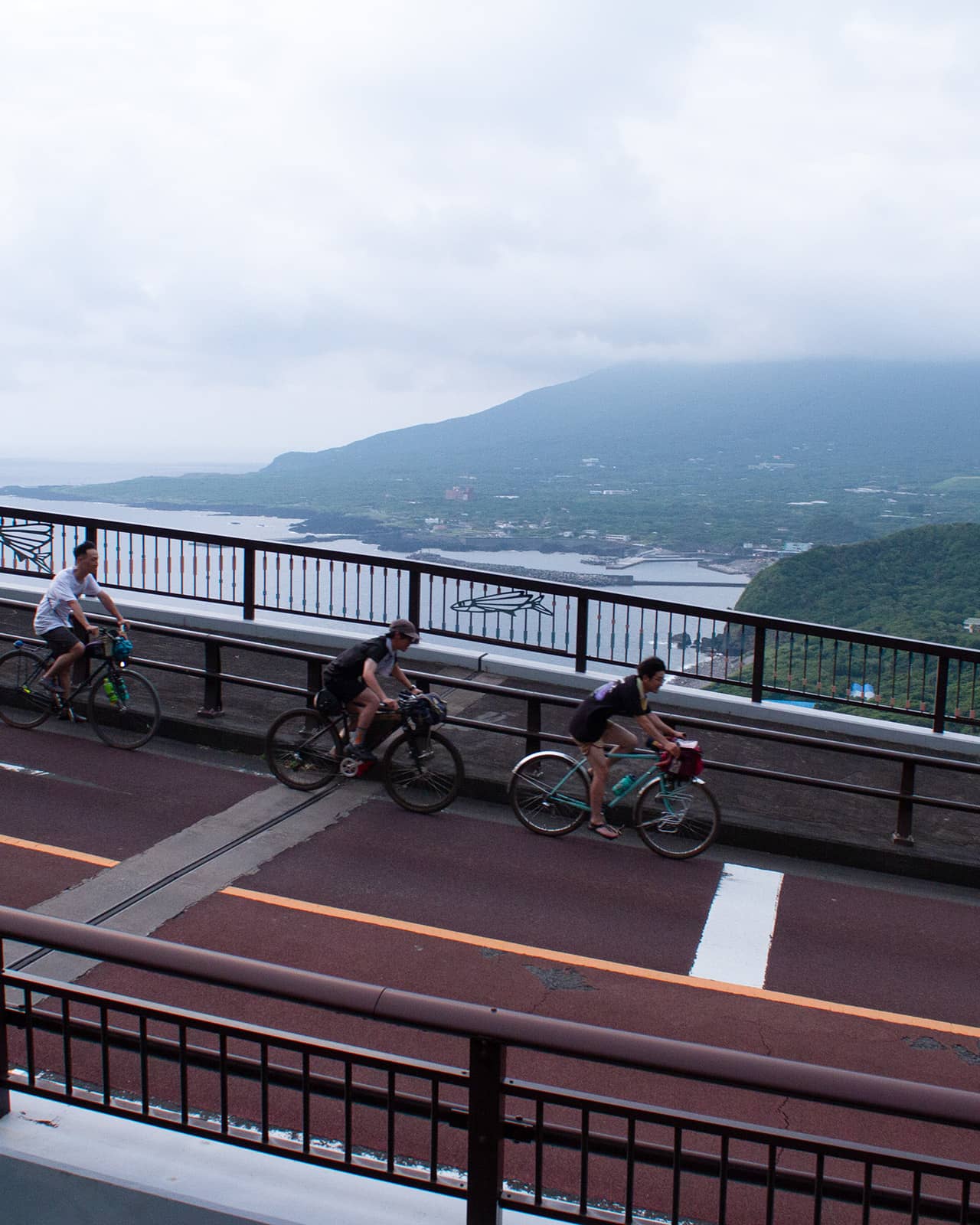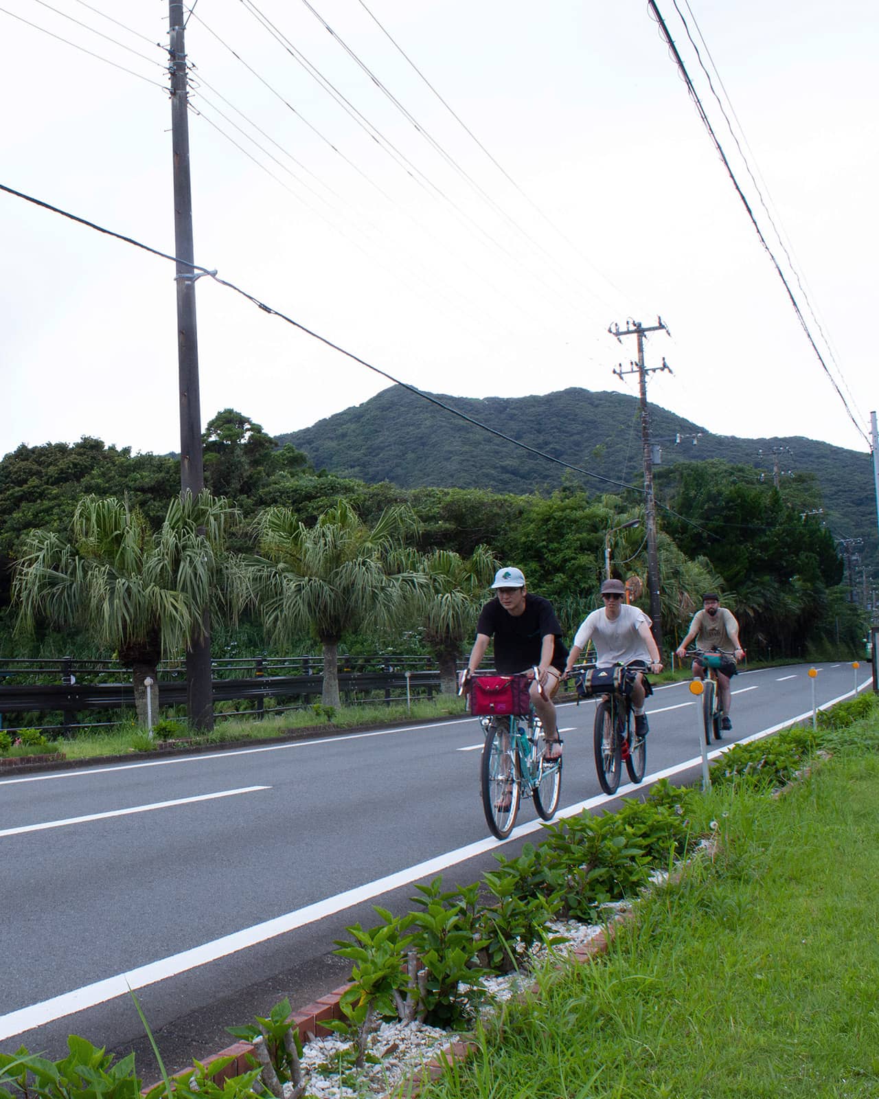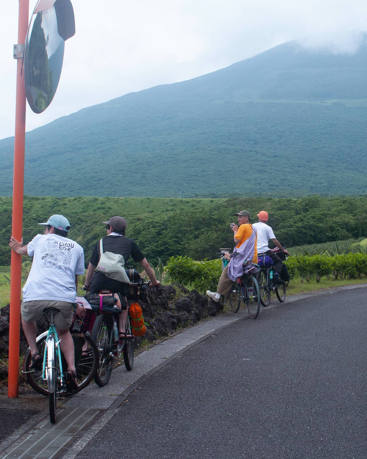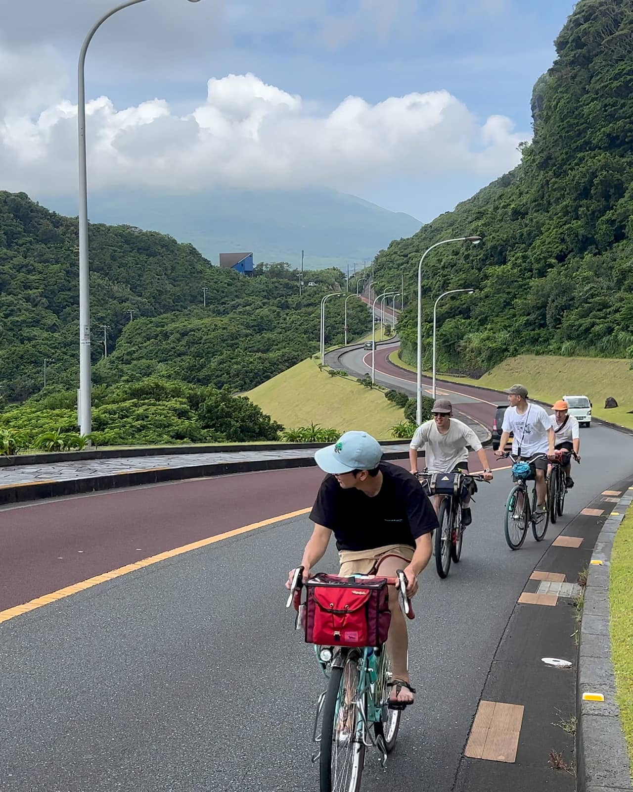 We arrived at Hachijojima Island at 8:00 a.m. As the ferry approached the island. After we lined up our bikes and took some photos, as if we were a group of teenagers, it was time to start pedaling.
