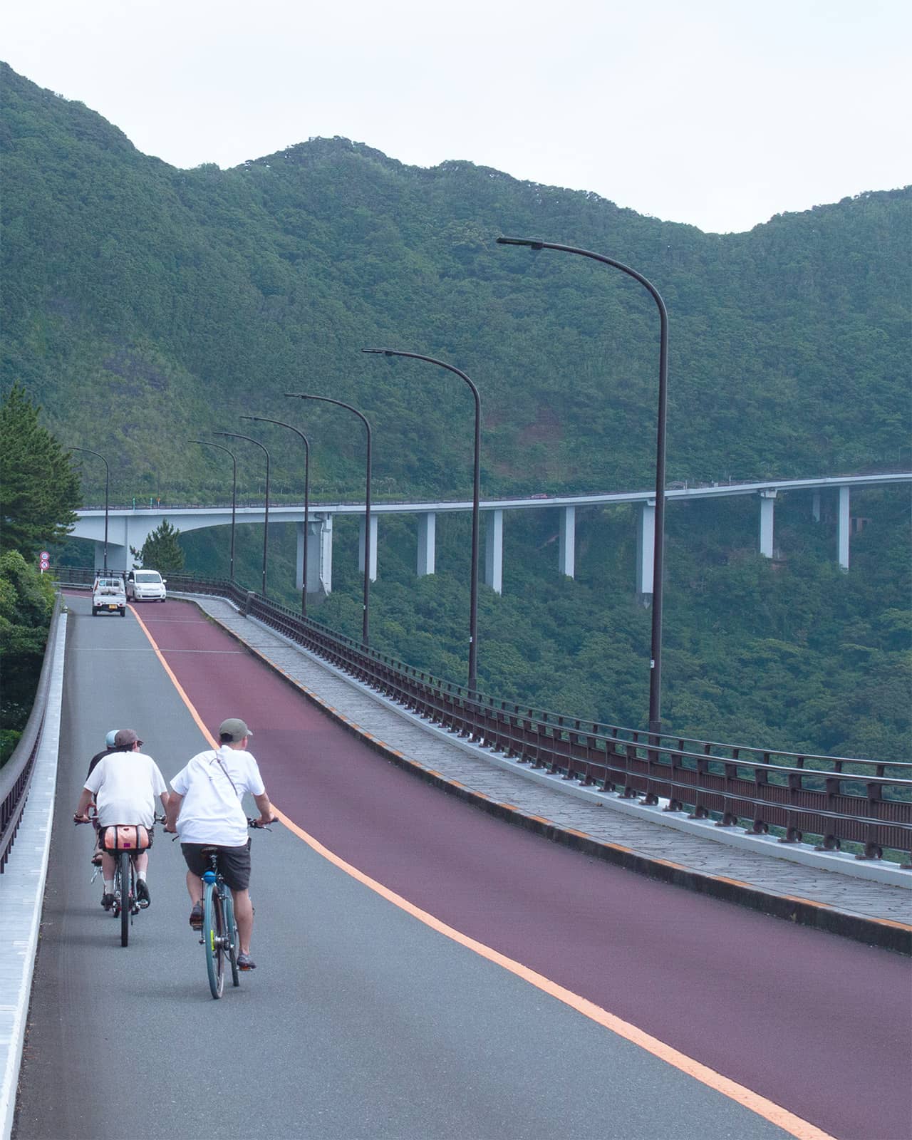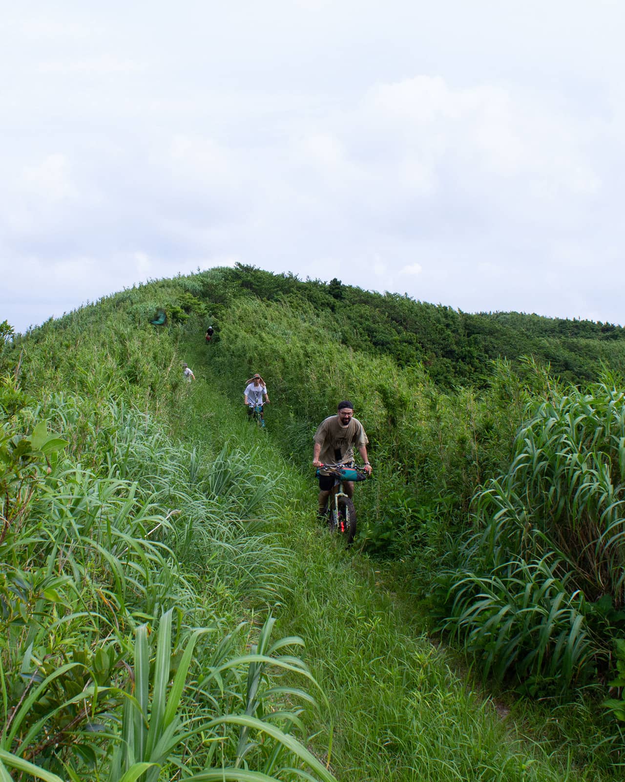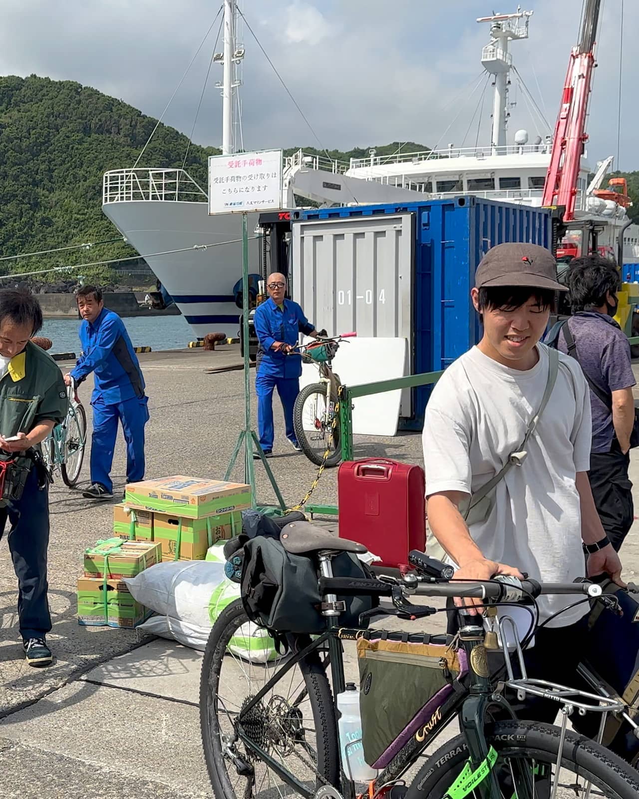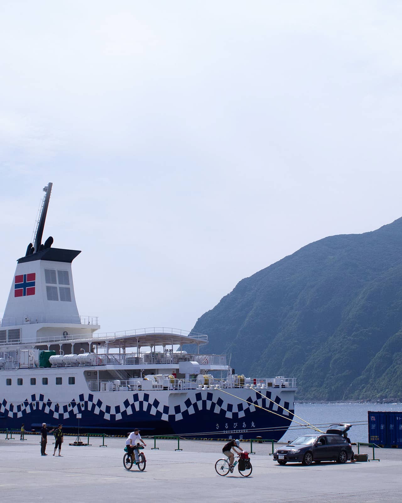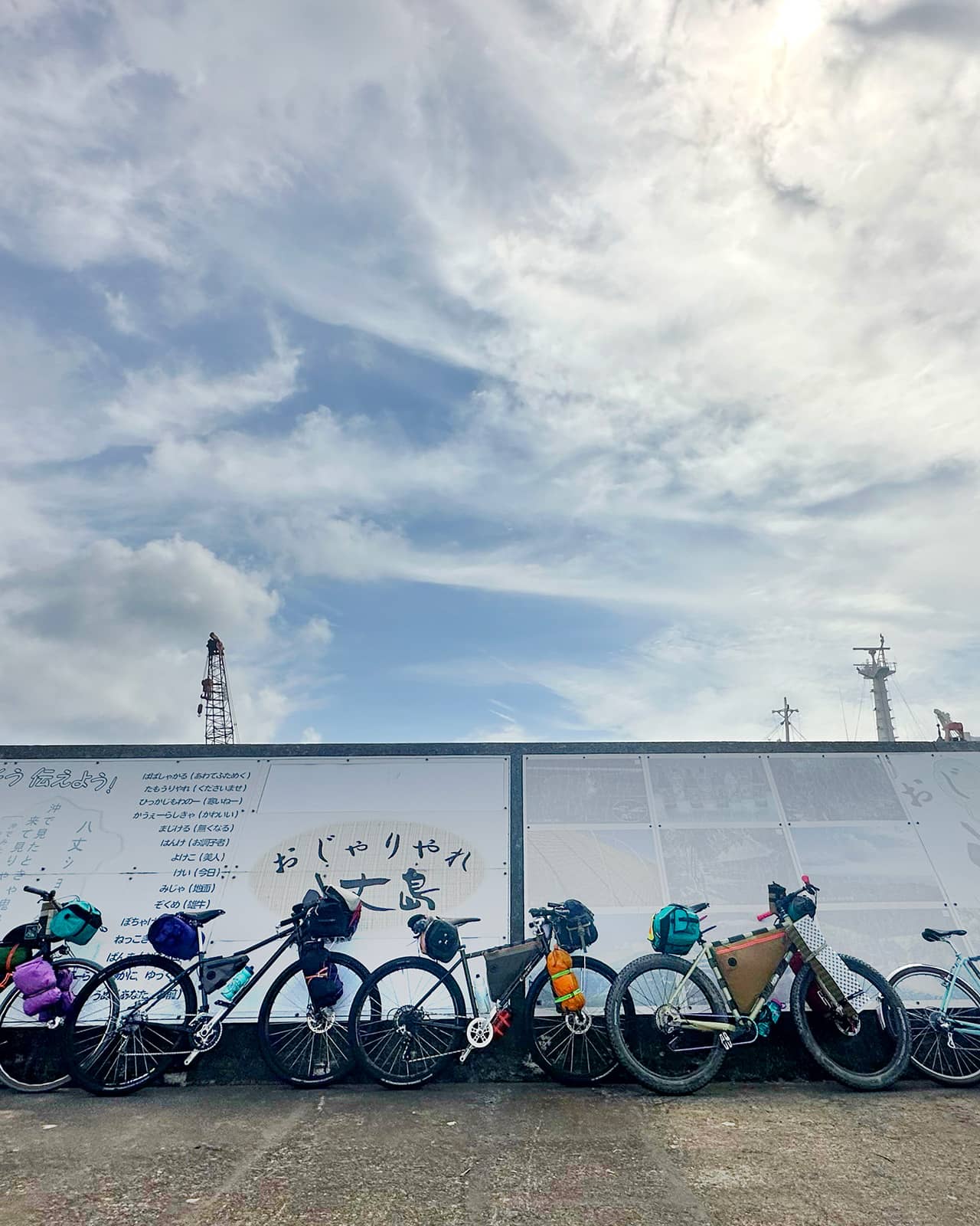 We arrived at Hachijojima Island at 8:00 a.m. As the ferry approached the island. After we lined up our bikes and took some photos, as if we were a group of teenagers, it was time to start pedaling.