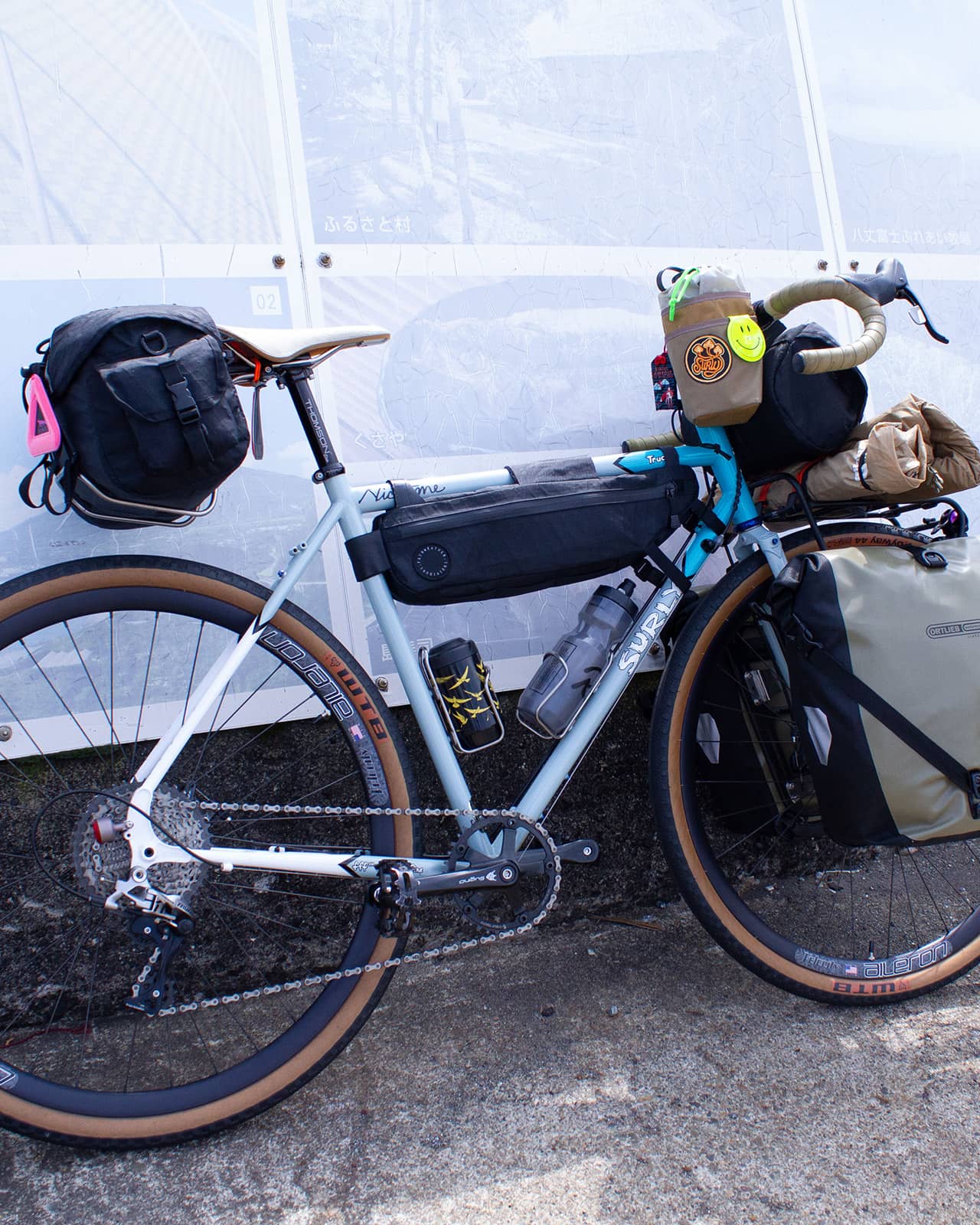 バイクパッキングは総重量重くてもフロントバッグ、フレームバッグ、サドルバッグ、と重量分散すれば全然大丈夫。