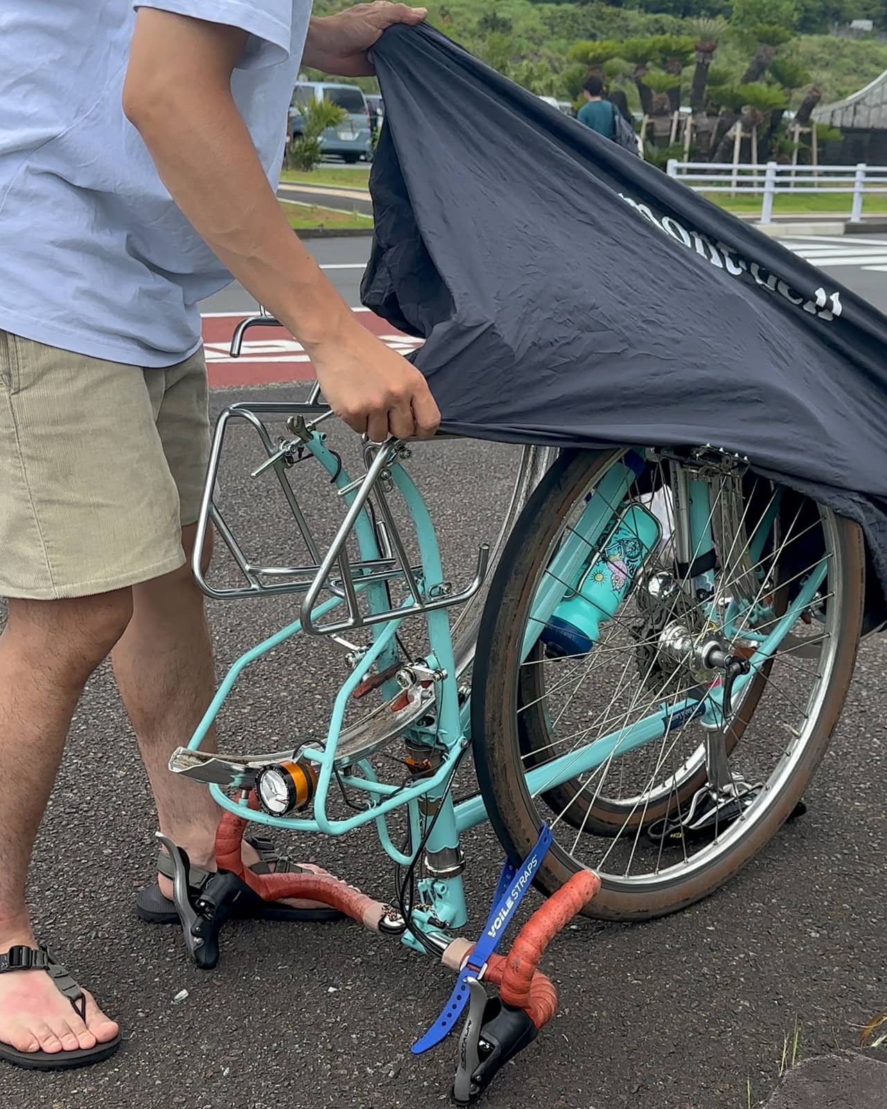 僕は鹿児島にも飛行機輪行した事あったので今回の輪行には裏テーマを個人的に設けました。それはフェンダー付きバイクって事です。流石にリアフェンダーは外さないと輪行袋に入らなかったので外してなるべくダメージの無い様括りました。意外と平気だったのでこれからのランドナー活動の幅が広がりました。