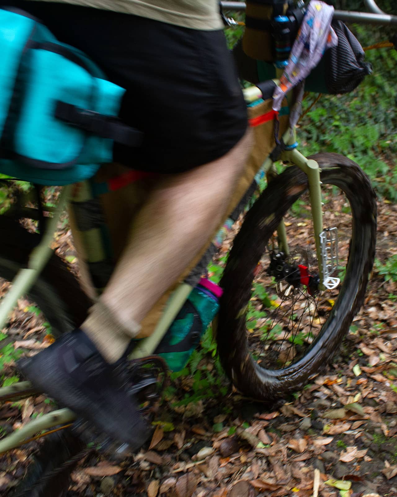 The Evasion Lite was awesome. Since the Evasion is a dirt touring bike, the stability was outstanding when the bike was fully loaded. I changed my tires to 650Bx50mm so this also helped stabilizing the ride and rolled very well on pavement. This bike can take wider tires than a cross frame, so this kind of mixed terrain bikepacking ride is right up its alley