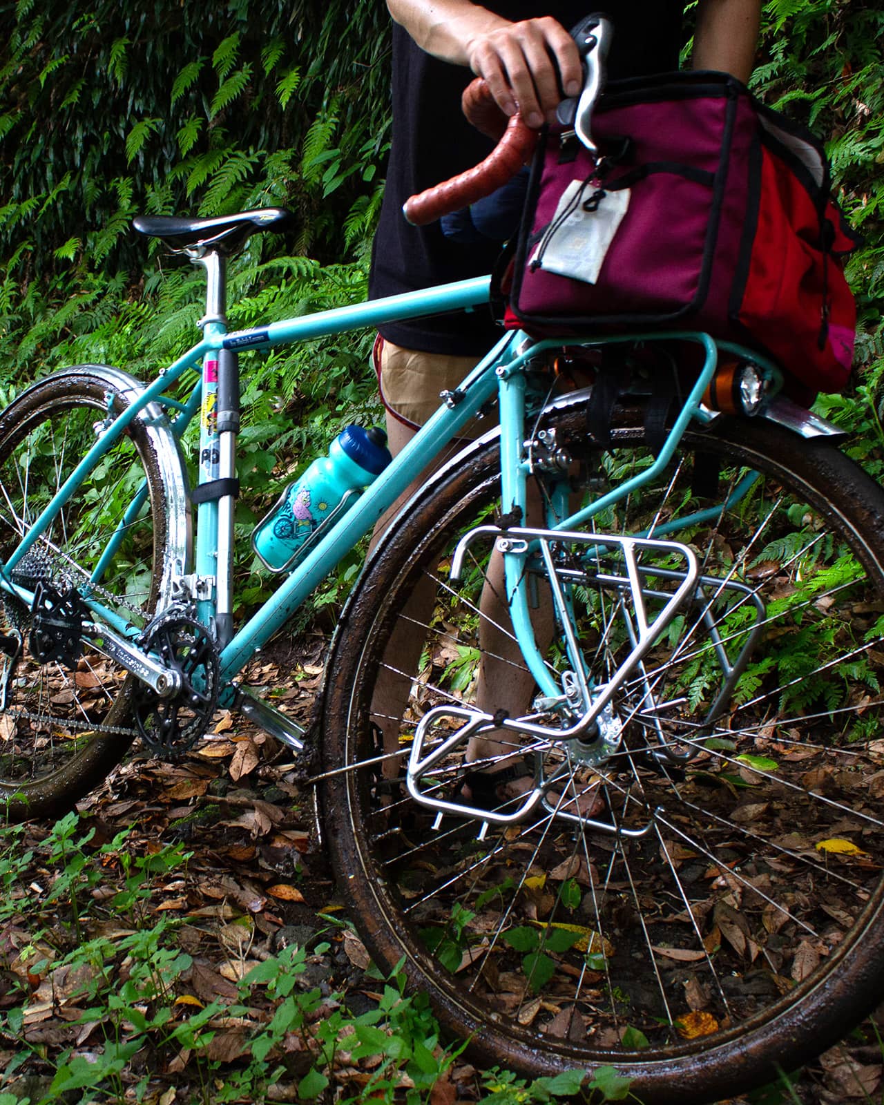 - 大好きなランドナースタイルでのキャンプ、フルフェンダーのバイクでの飛行機輪行。普段の通勤にパニアバッグを追加しただけ。OZETTE(現行名は「peregrine」)に着替えやら取り出す物入れて、パニアバッグに寝袋、マット、テントが入ってます。スマートって言われたけどガスバーナーやらお皿やらは皆に何とかしてもらう気満々だったから少ないのは当たり前。 Camping with my favorite style, the rando style was fun and airplane rinkoing a full fender bike was a challenge. I added the pannier bags to my daily commute set up. That's pretty much it. I packed my clothes and other stuff I need to constantly take out in the Ozette (now Peregrine) bag and put all the camping gear, such as a sleeping bag, tent, matress, etc. People said my bikepacking was well and simple. Little did they know, I didn't bring any cooking utensils becuase I knew the rest of the crew would bring them so I depended on them.