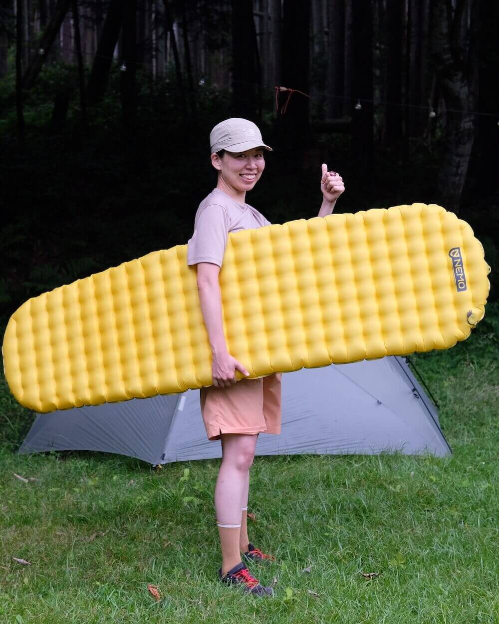 私の中でSWIFT CANPOUTが夏のはじまりの合図になっているのは間違いなくて、世界中で同時に「自転車キャンプを楽しむ」ってワクワクしますよね。毎年、限定バンダナを何処かに付けるのが恒例。ということに書いている今気づきました!後はとにかくコンパクト&軽量。登山もするのでもう癖です。ULと言えば聞こえがいいですが、ここだけの話しパワーがないので帳尻合わせしてるだけです(笑)なので、今回メンバーの中で1番身軽な装備。