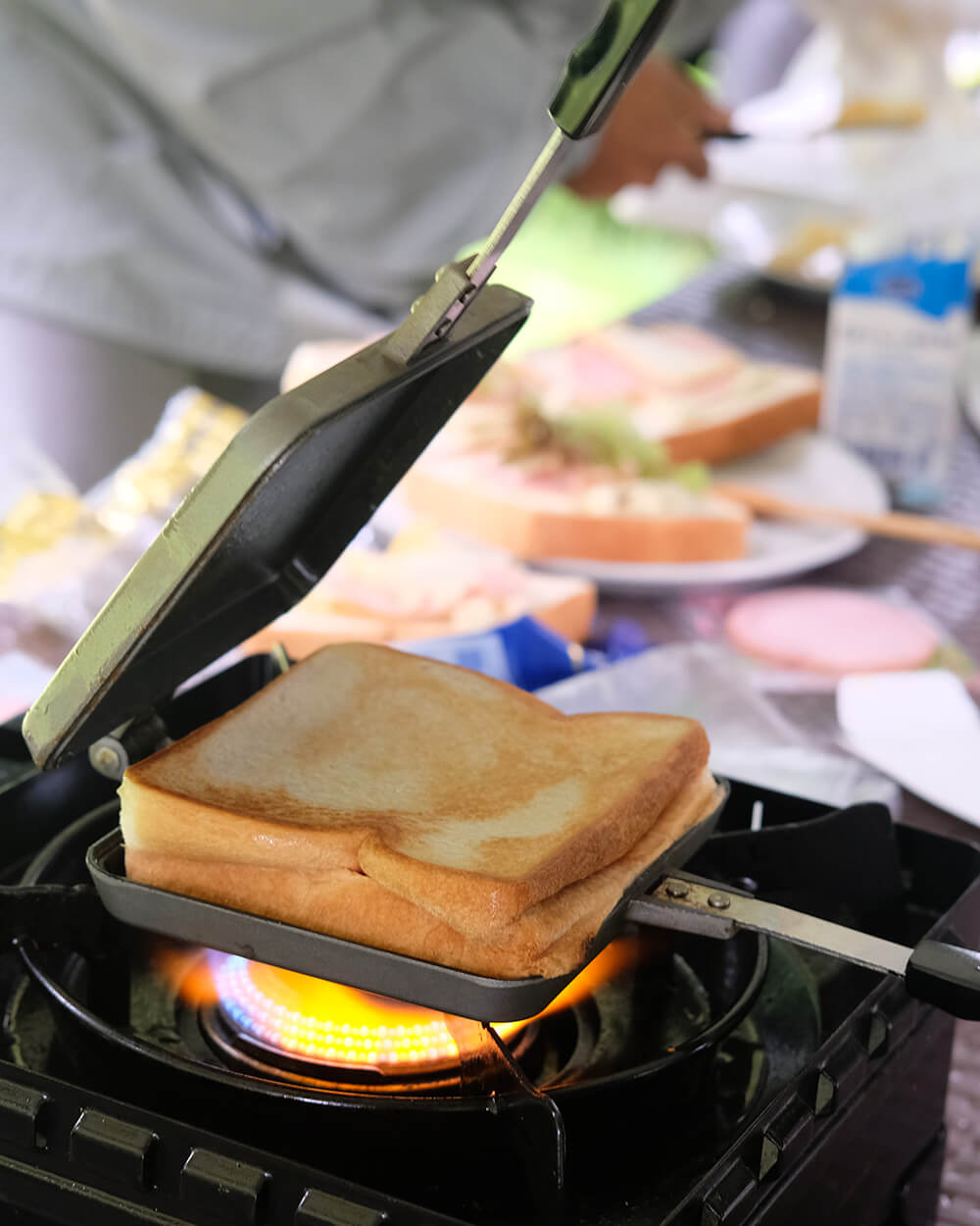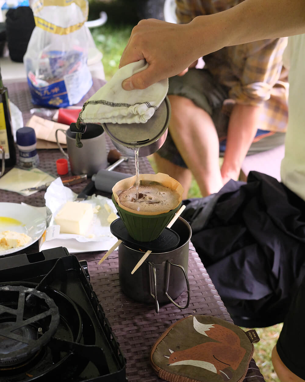 外で食べる朝ごはんの特別感。熱々のコーヒーとホットサンドが、昨晩のアルコールを分解してくれた気がした。