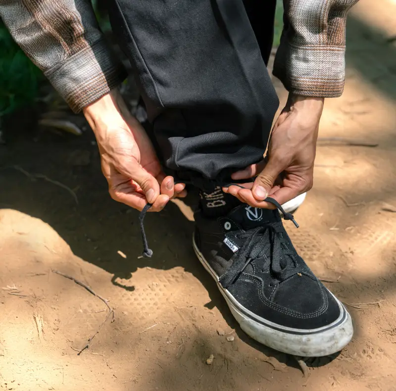 The draw strings in the waist and pant leg bottom. No time for belts? No problem. Riding a bike without tucking the hems in the socks? No Problem!