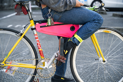 The most unique feature for the bag is the wedge-shape. By having deeper front end, users can get enough space on their bikes to fit a bottle cage and enables the bag to fit cookers that are 16cm in diameter, U-locks, etc…