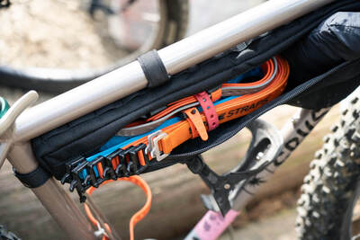 The New Frame Bag SP is available in Dyneema or Cordura fabric. The bag came out as a Super Professional (SP) bag for touring, gravel rides and more tough rides.