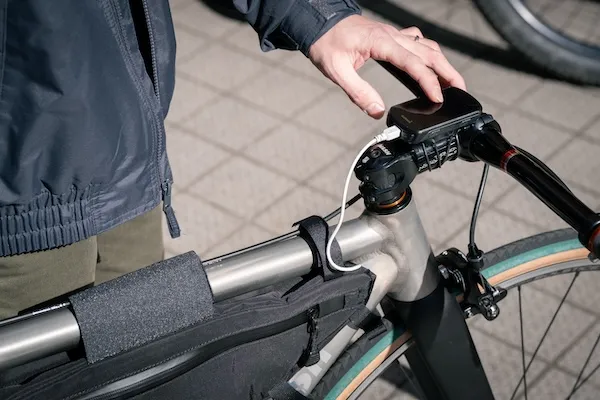 The bag has a hydration tube port on the frontend, which can also be used as a cable rout for rechargeable lights.